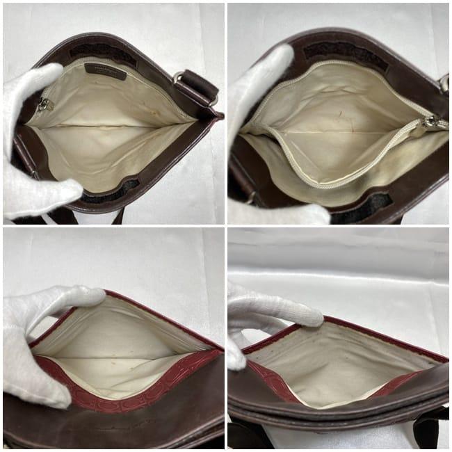 詳細説明 | 角や縁に擦れ、表面上部に擦れや傷、内側に汚れ、ショルダー紐に毛羽立ち、金具に傷など使用感がございますがまだまだお使いいただけるお品物です。 |