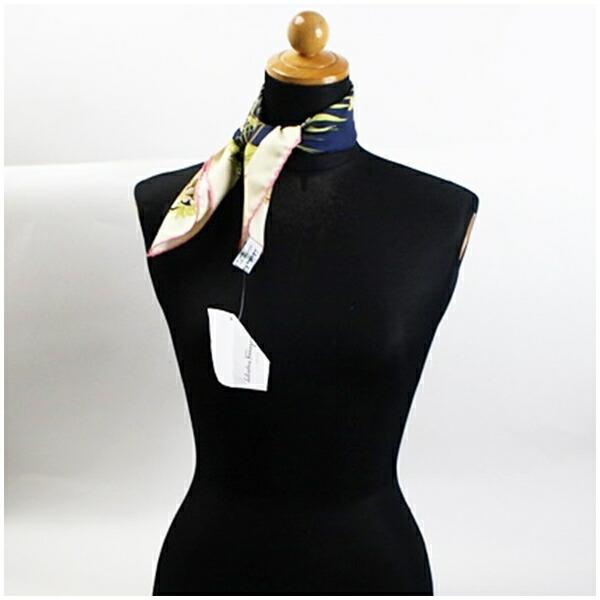 商品名 | サルバトーレフェラガモ シルク ミニスカーフ 未使用 アイボリー×ネイビー 花 鳥柄 中古 Sランク Salvatore Ferragamo |