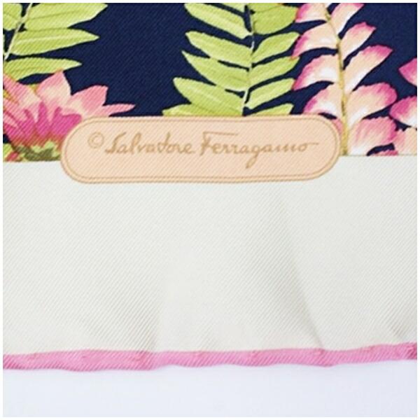 商品名サルバトーレフェラガモ シルク ミニスカーフ 未使用 アイボリー×ネイビー 花 鳥柄 中古 Sランク Salvatore Ferragamo