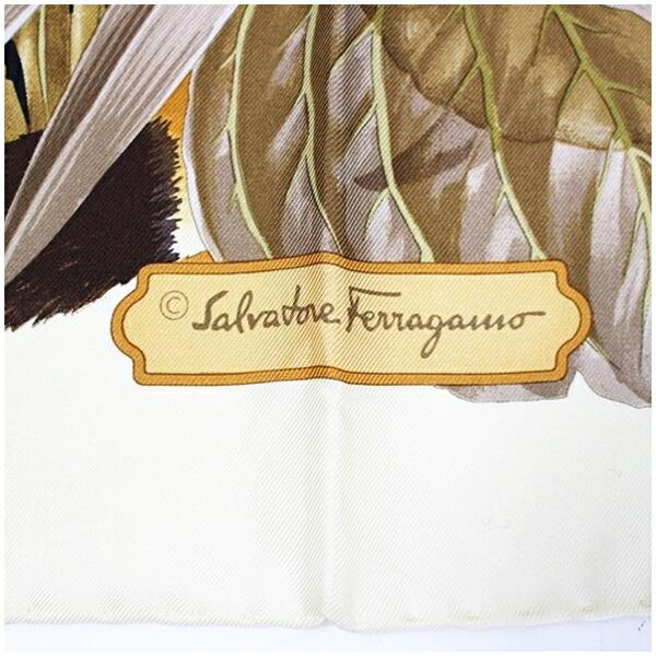 商品名サルバトーレフェラガモ シルク スカーフ クリーム アニマル柄 中古 Aランク Salvatore Ferragamo