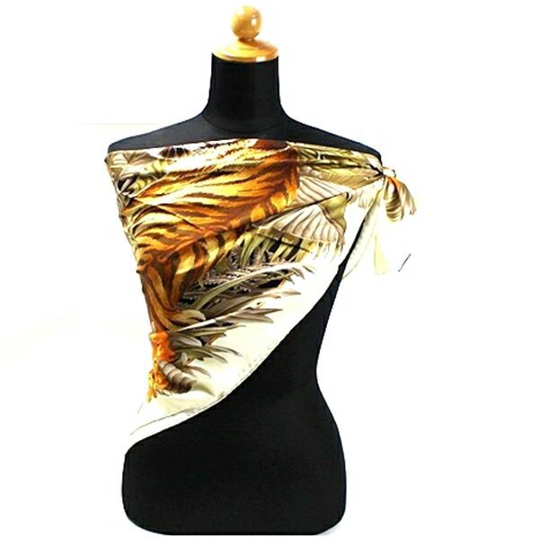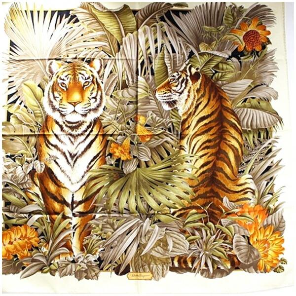 サルバトーレフェラガモ シルク スカーフ クリーム アニマル柄 中古 Aランク Salvatore Ferragamo | レディース女性