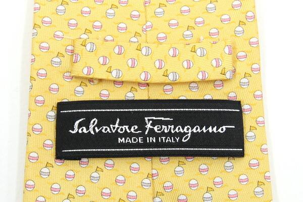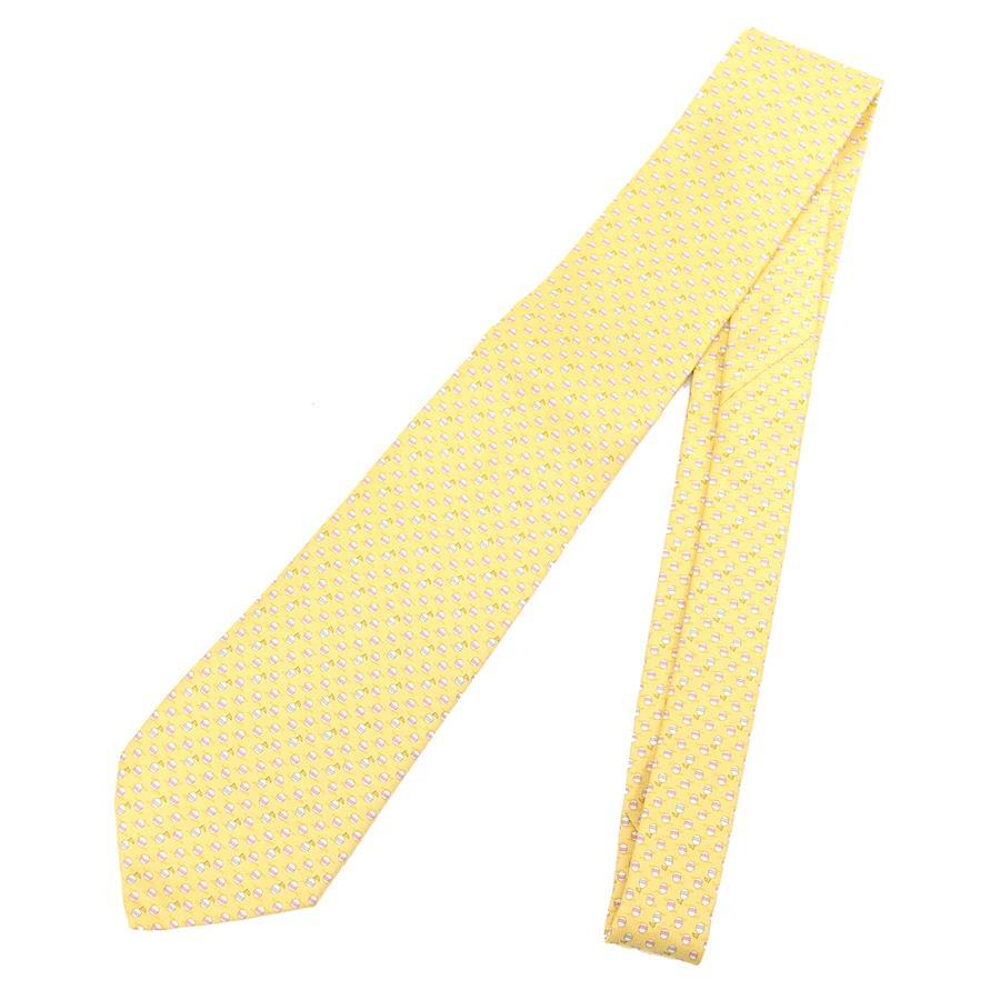 フェラガモネクタイイエローシルク100%中古スーツビジネスフォーマルメンズ男性SalvatoreFerragamo
