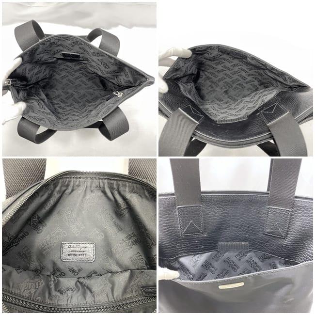 サルヴァトーレ フェラガモ トートバッグ ec-22723 ブラック 美品 キャンバス レザー 中古 DS-24 6551 Salvatore Ferragamo ヴィンテージ 軽い ファスナー シンプル ロゴ 定番 人気 女性 レディース 革 黒色 トート バッグ 高級感 上品 ブランド 本物 鑑定済み