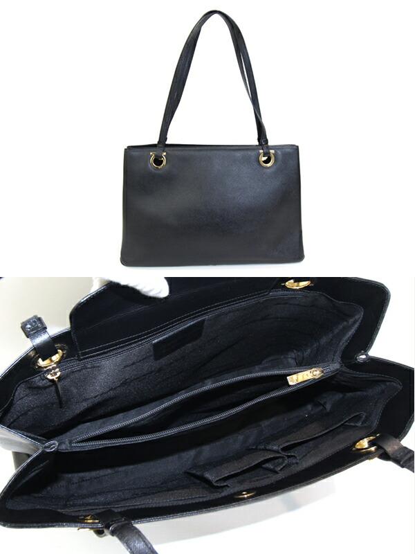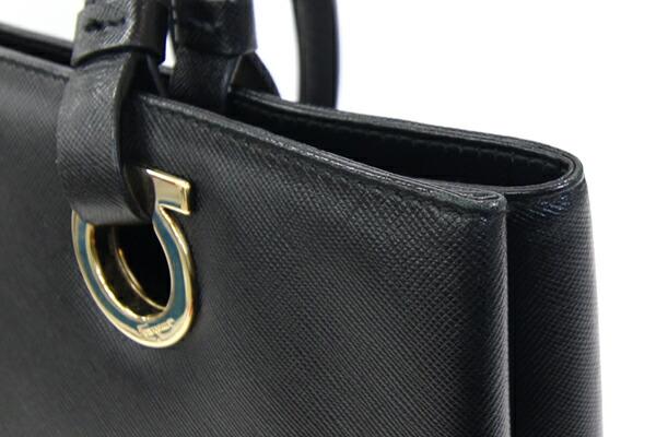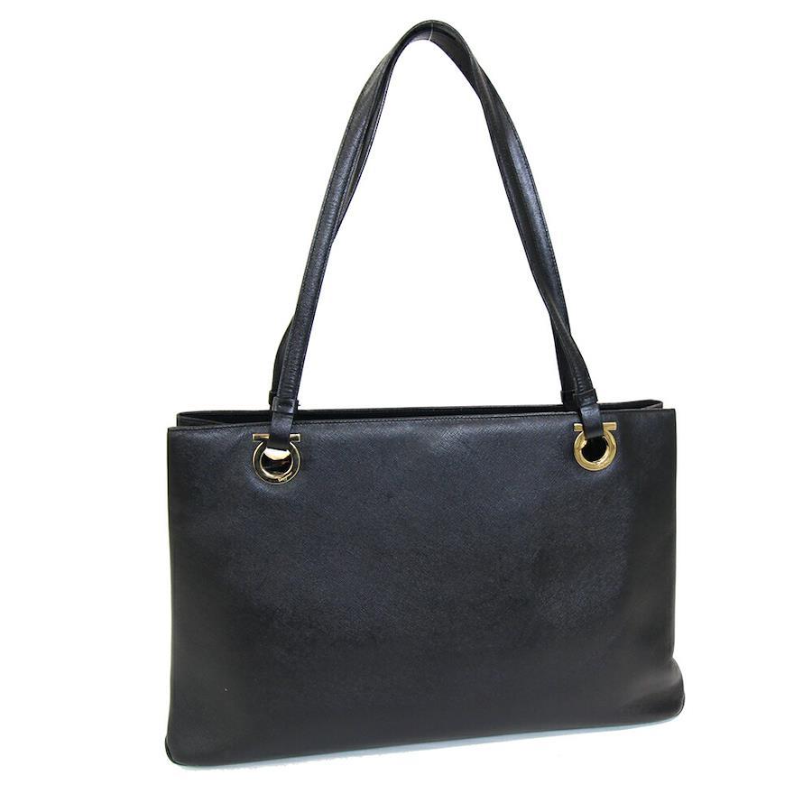 フェラガモトートバッグガンチーニEF210704ブラックレザー中古肩掛けショルダーロゴレディースSalvatoreFerragamo