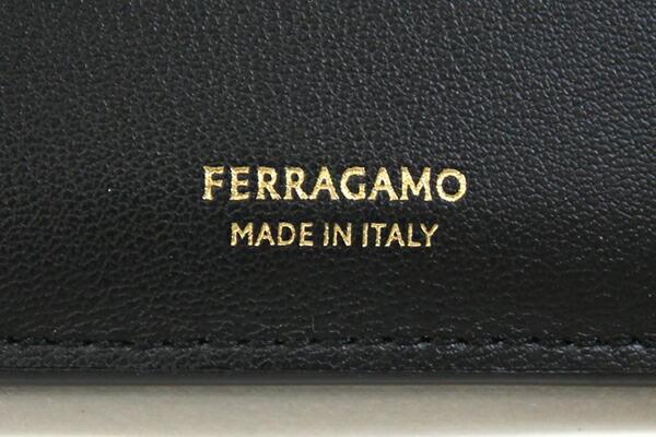 フェラガモ三つ折り財布ガンチーニ220445ブラックゴールド金具レザー中古コンパクトウォレットミニ財布レディースSalvatoreFerragamo
