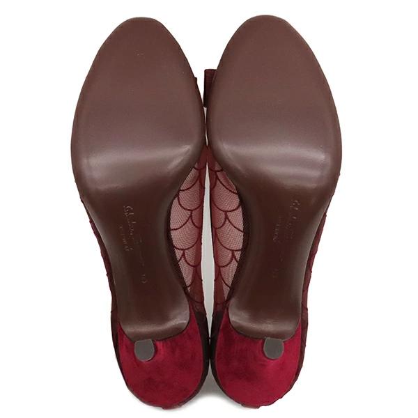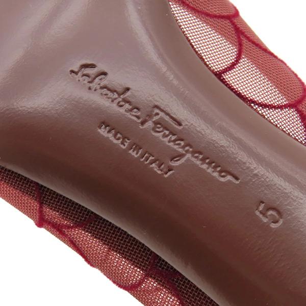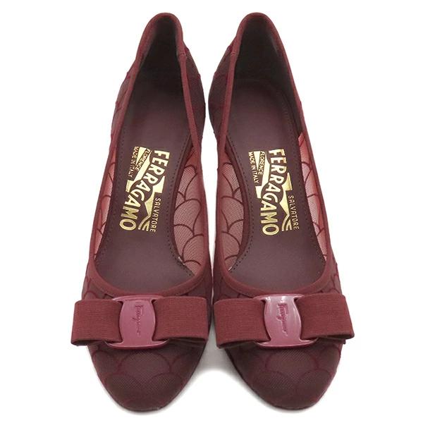 サルヴァトーレ・フェラガモ Salvatore Ferragamo パンプス ヴァラ リボン ファブリック バーガンディー ボルドー 赤 チュール 732853 #5 レディース 【箱】定番 人気 美品 【中古】