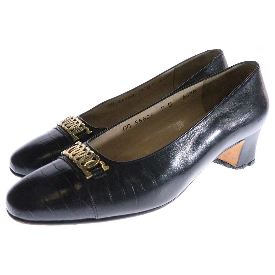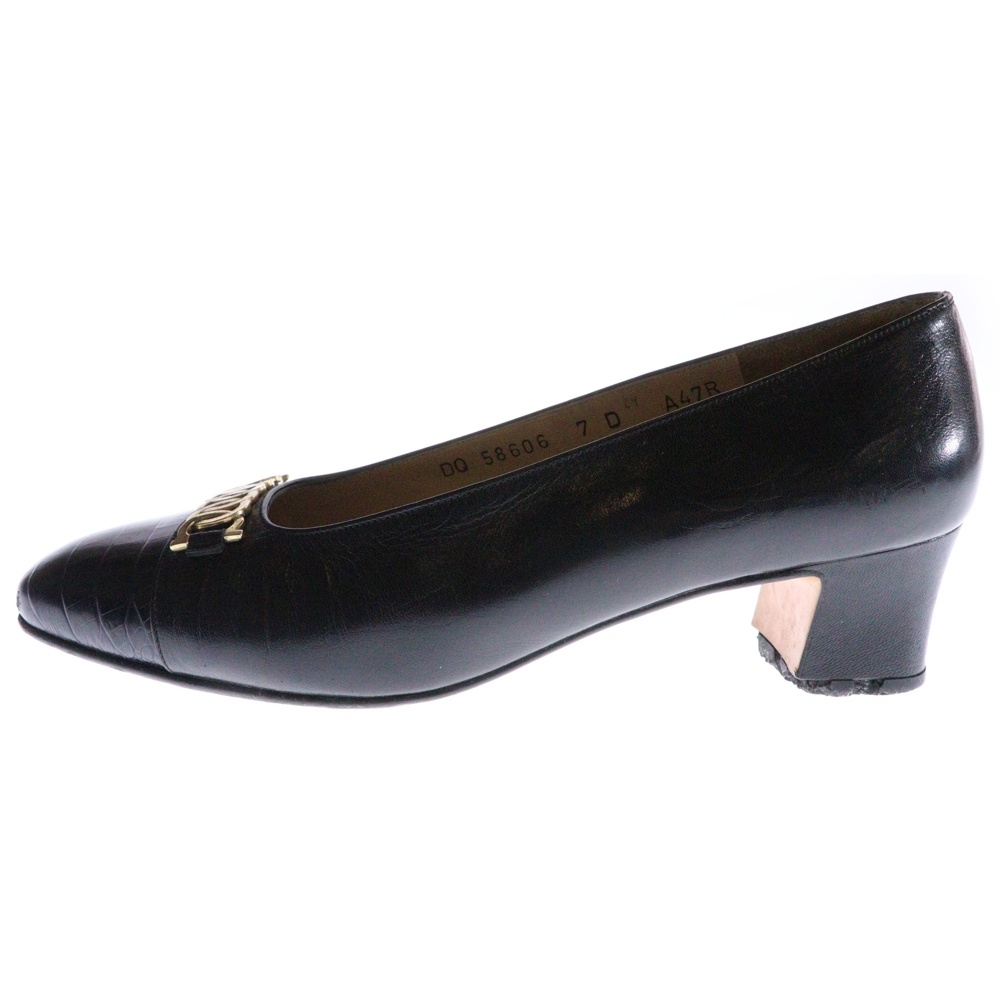 [モデル]ゴールド金具付き レザーパンプス レディース ブラック DQ 58606