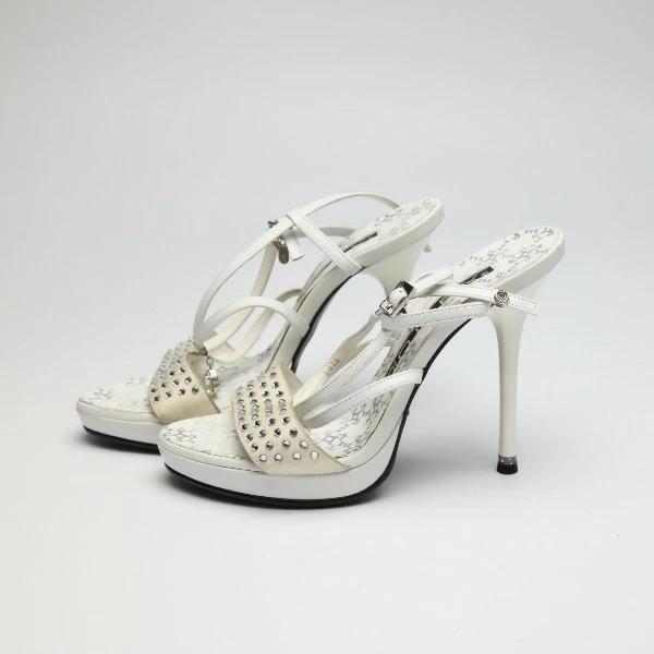 | サンダル アンクルストラップ付M ピンヒールレディース ホワイト |