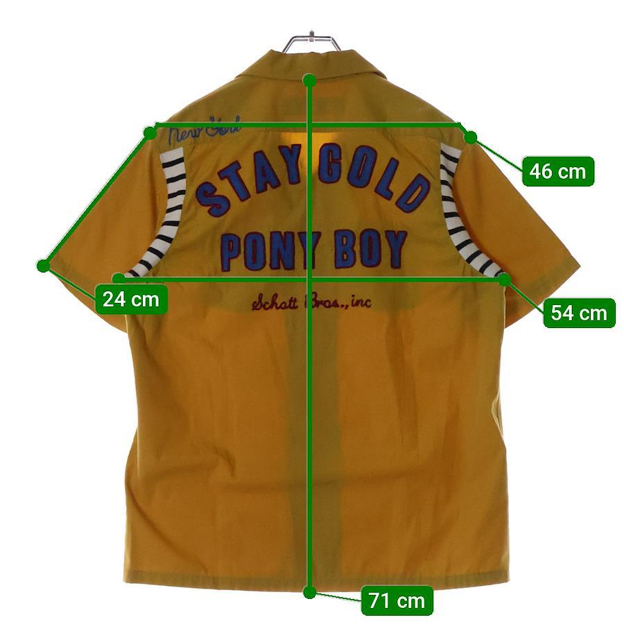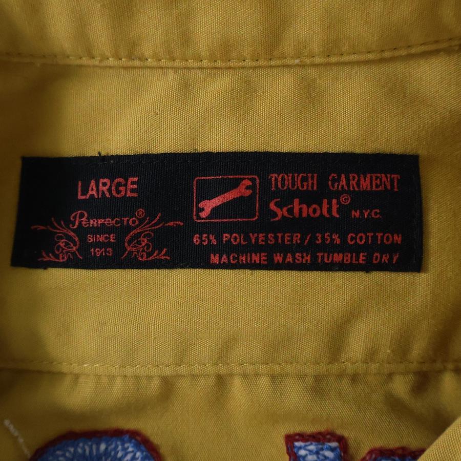 ■商品情報[商品番号]2925H050012[ブランド]SCHOTT(ショット)[モデル]90-00s VINTAGE WORK SHIRTS 刺繍 ポリエステル コットン混 ワークシャツ 半袖シャツ イエロー[サイズ]着丈:71センチ 身幅:54センチ 肩幅:46センチ 袖丈:24センチ表記サイズ:L■状態・コンディション[状態ランク]ランク B使用感有り全体的にヨレ/シワ/毛羽立ち有り首周り/両肩/両袖口/裾周りに擦れ有り前身頃左ポケットに汚れ有り[備考]-