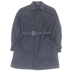 VERSACE Coat with All-Over Print, Fly Front, Belted, and Stand Collar in Navy Nylon and Sheepskin