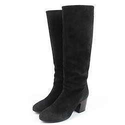 CHANEL Coco Mark Chunky Heel Long Boots in Black Suede Leather (G32212)
