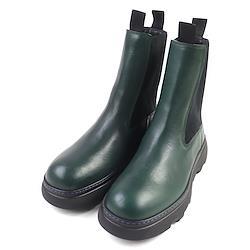 BURBERRY Creeper Chelsea Boots, Side Gore, Chunky Rubber Sole, Green Leather, 8074918