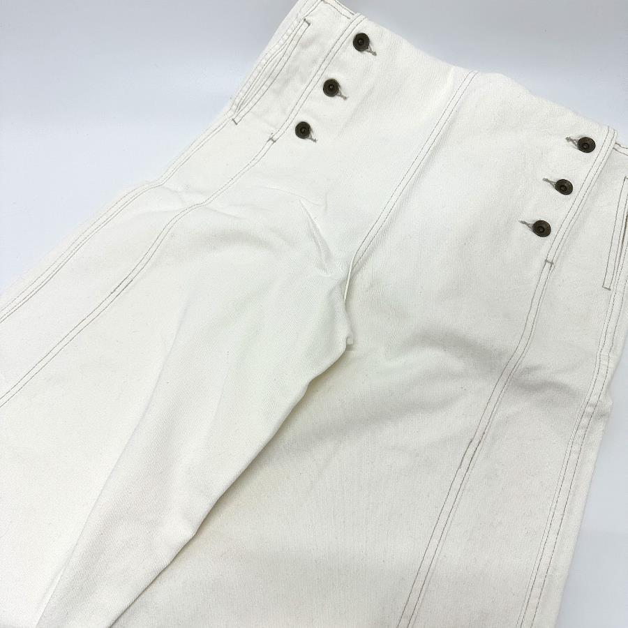 | サイズ | 表記サイズ:S 総丈:124cm ウエスト幅:50cm 股上:54cm 股下:58cm ワタリ幅:35cm 裾幅:35cm ウエスト幅は平置きした状態で直径を計測しています。 実寸サイズには多少の誤差がある場合があります。 |