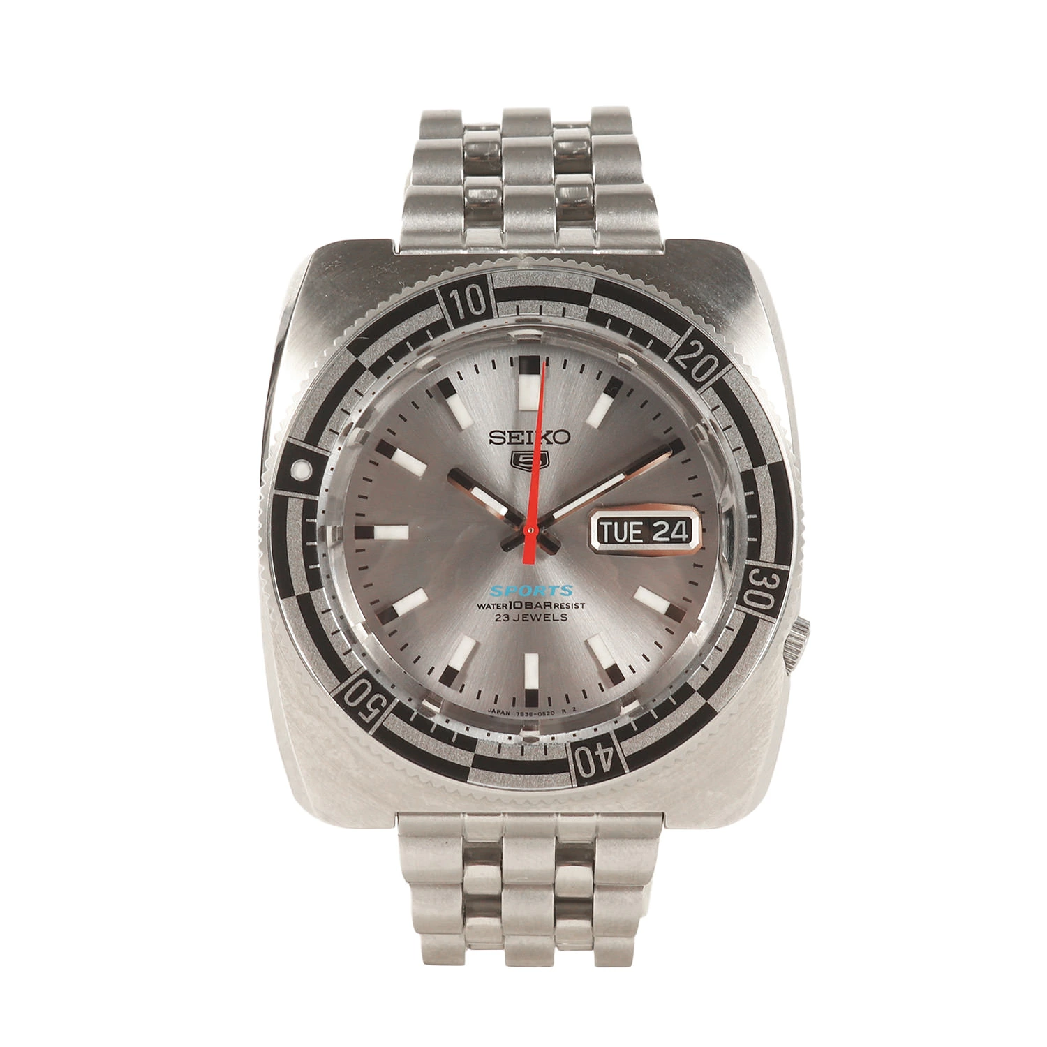 | 商品説明 | ・希少なミントコンディション ・1970年代にリリースされた”セイコー5スポーツ”の復刻モデル ・スクエア型ケース ・ケース径 40mm ・チェッカー柄ベゼル |