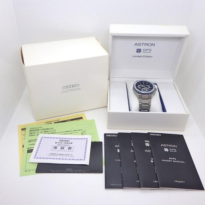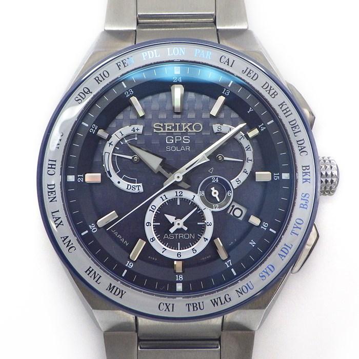 SEIKO 腕時計 アストロン SBXB173/BX53-0BC0-2 エグゼクティブライン 日本限定600本 デイデイト ワールドタイム表示 パワーリザーブ表示 DST機能 機内モード ギョーシェ ブラック文字盤 チタン セラミック ソーラー GPS衛星電波 【箱・保付き】 【中古】