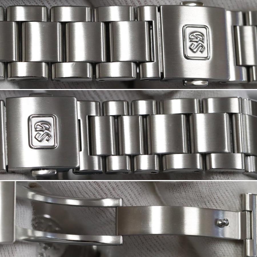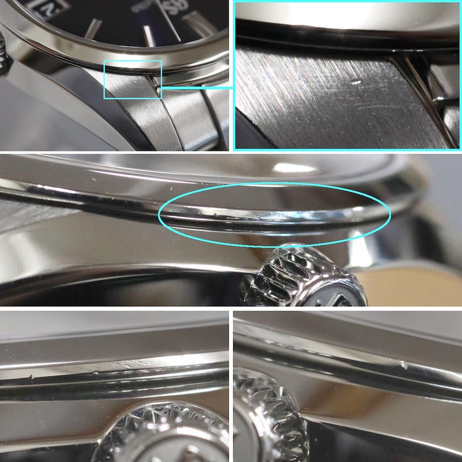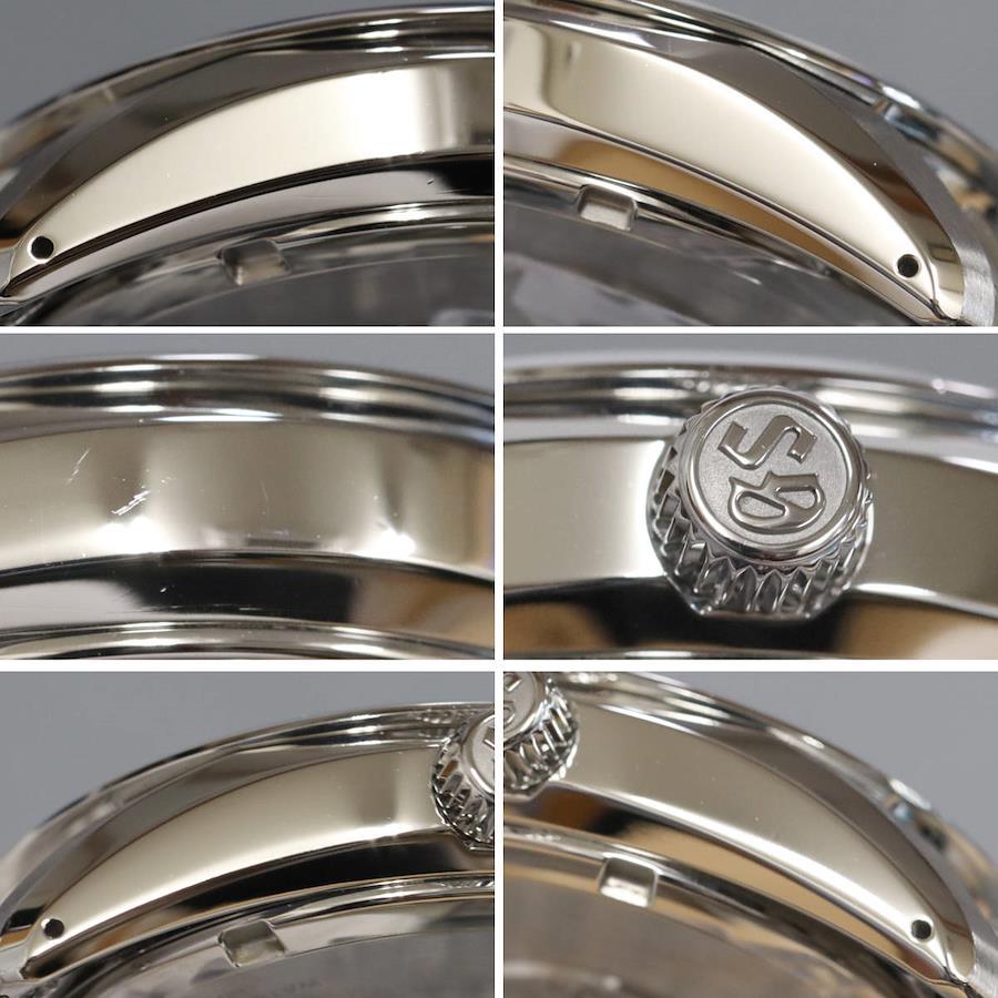 グランドセイコーのメンズウォッチ、ヘリテージコレクション ミッドナイトブルー(SBGA439)9R65-0DY0の中古品です。研磨仕上げが行われているようですが、ケースサイドやラグ、ベルトに部分的に傷残りがあります。肉眼では目立ちませんが、リューズ上のベゼルにえぐれがあります。裏蓋に小傷があります。保証書が付属し、記載の購入日は2023年7月8日です。付属品は以下の通りです。内外箱保証書+---+---+---+---+---+。{状態}ケースBベルトAB{素材}ケースSSベルトSS{サイズ} ケース:約38mm ,ストラップ:約20.5cm。{ムーブメント}スプリングドライブ{その他}デイト表示10気圧防水パワーリザーブ表示。{付属品}内外箱,保証書{お問合せ商品番号}25106020+---+---+---+---+---+。