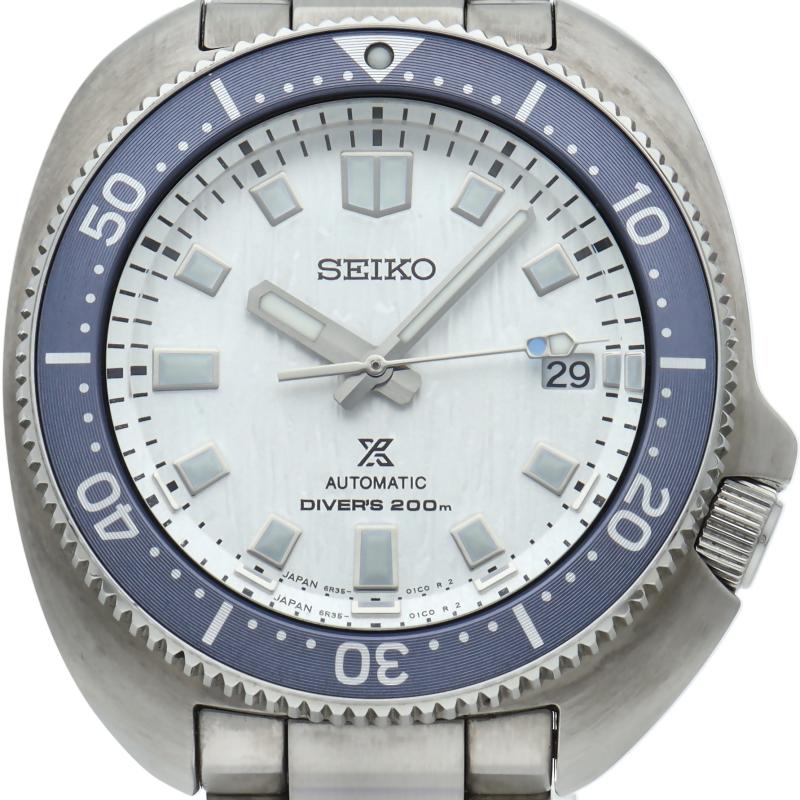 商品説明:1970年に発売された、ユニークな流線型のフォルムが特徴的なダイバーズウオッチ。オリジナルモデルが冒険家・植村直己氏によって1974年~76年の北極圏犬ぞりの旅に携行された1970 ダイバーズ 現代デザインモデルでは、北極海の上に浮かぶ氷河とその極寒の様子をホワイトのダイヤルで表現しています。