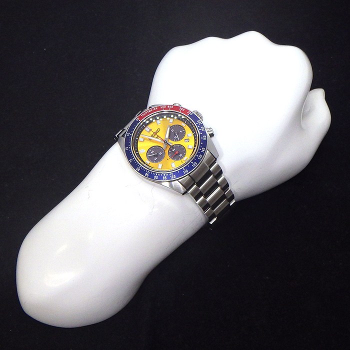 ■商品名SEIKO 腕時計 プロスペックス スピードタイマー SBDL117/V192-0AH0 サンレイ イエロー文字盤 デイト クロノグラフ タキメーター 夜光針/インデックス スモールセコンド パワーリザーブ表示 SS ソーラー 【中古】