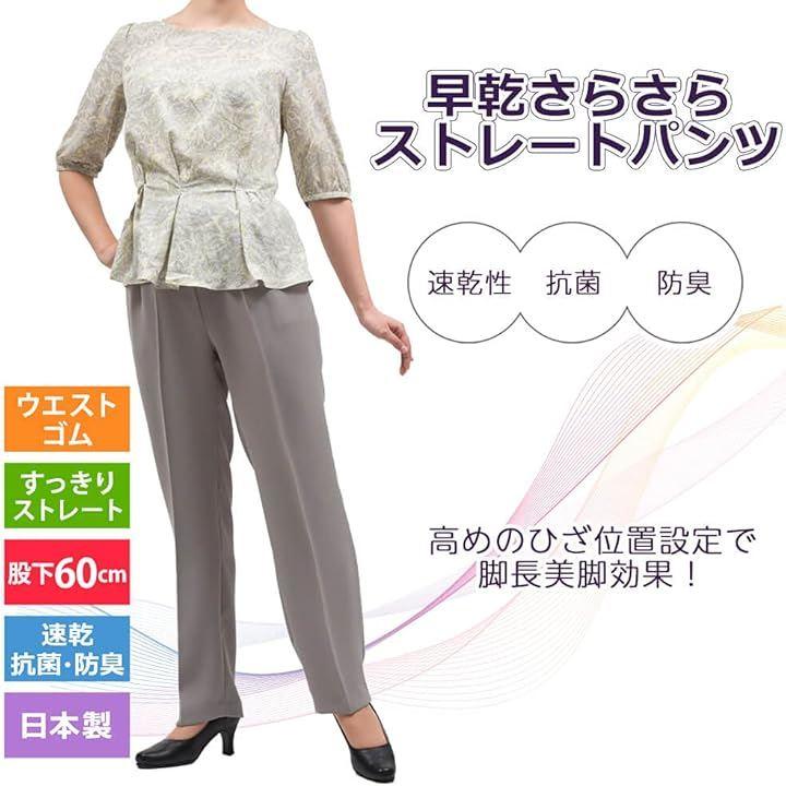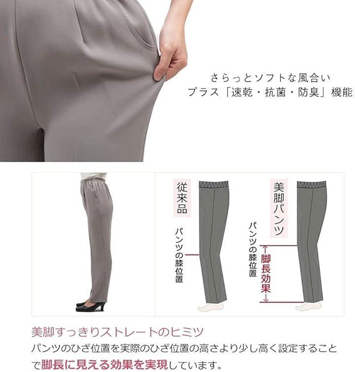 ウエストはゴム仕様ながら前面にギャザーが無い作りで正面から見るとスッキリ見え。