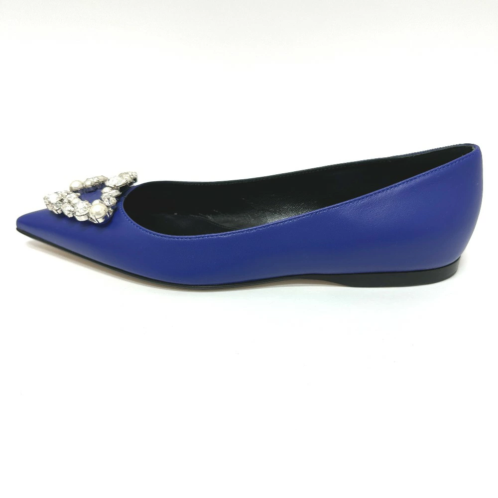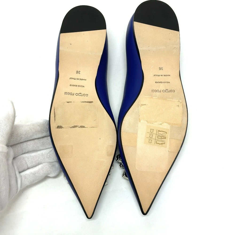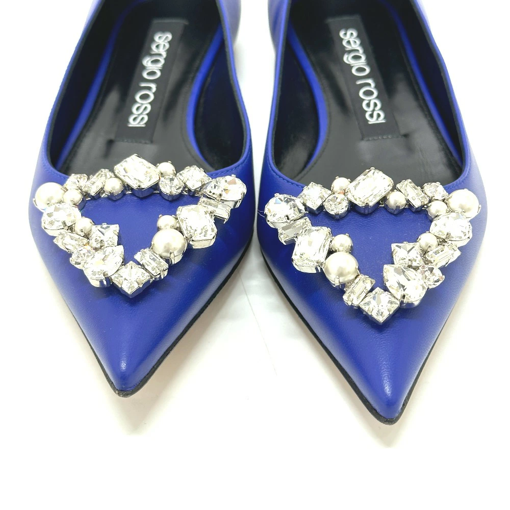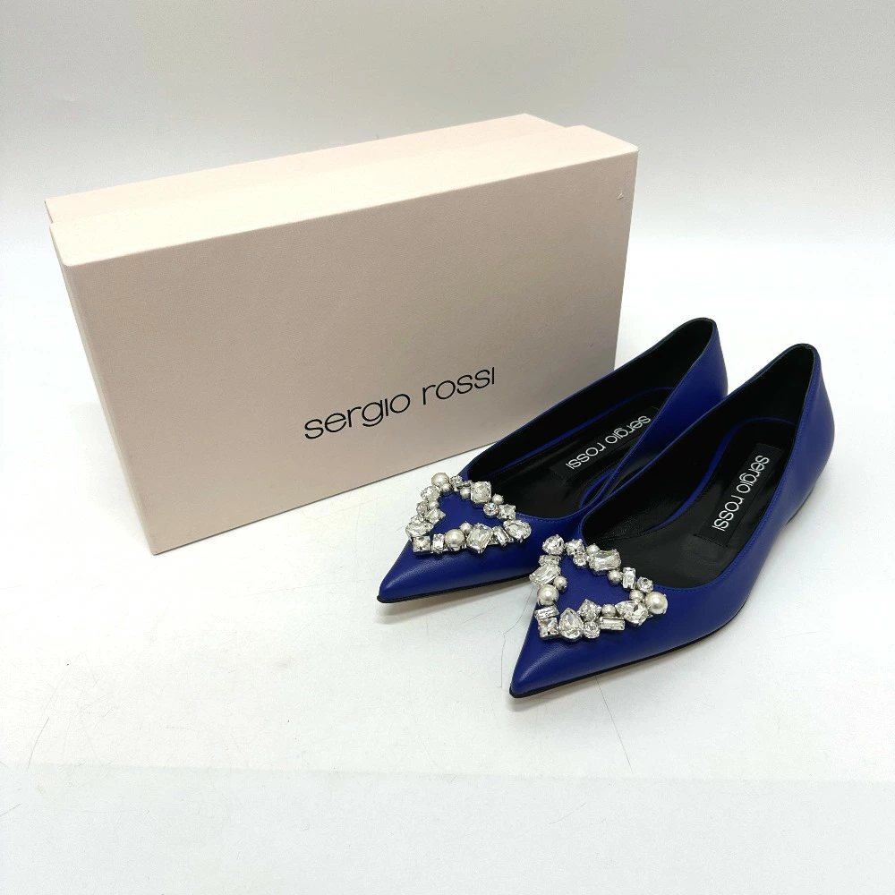 Sergio Rossi B09820-MNAN07 Triangle Jeweled Ballet Flats, Leather, Women's, Blue, Unused, Pre-owned