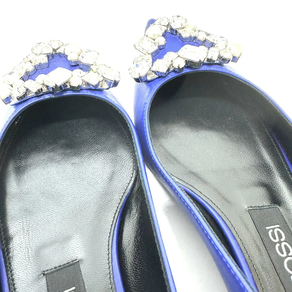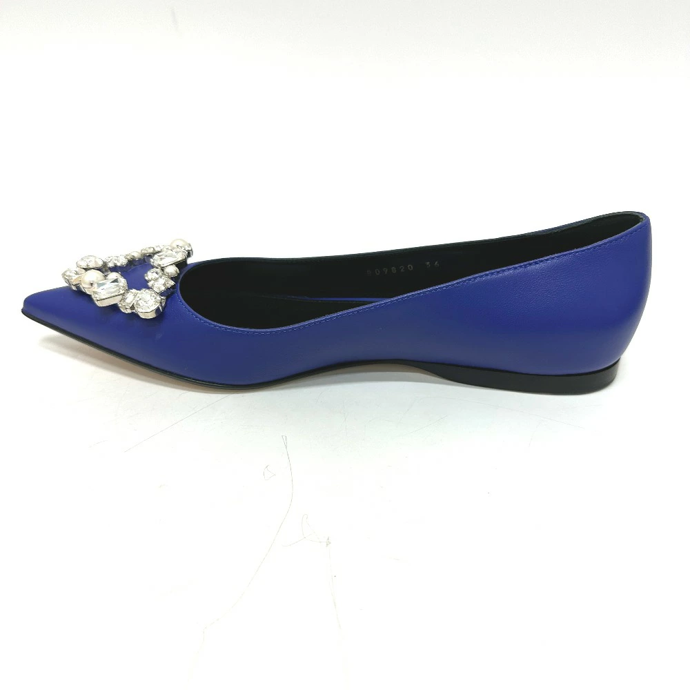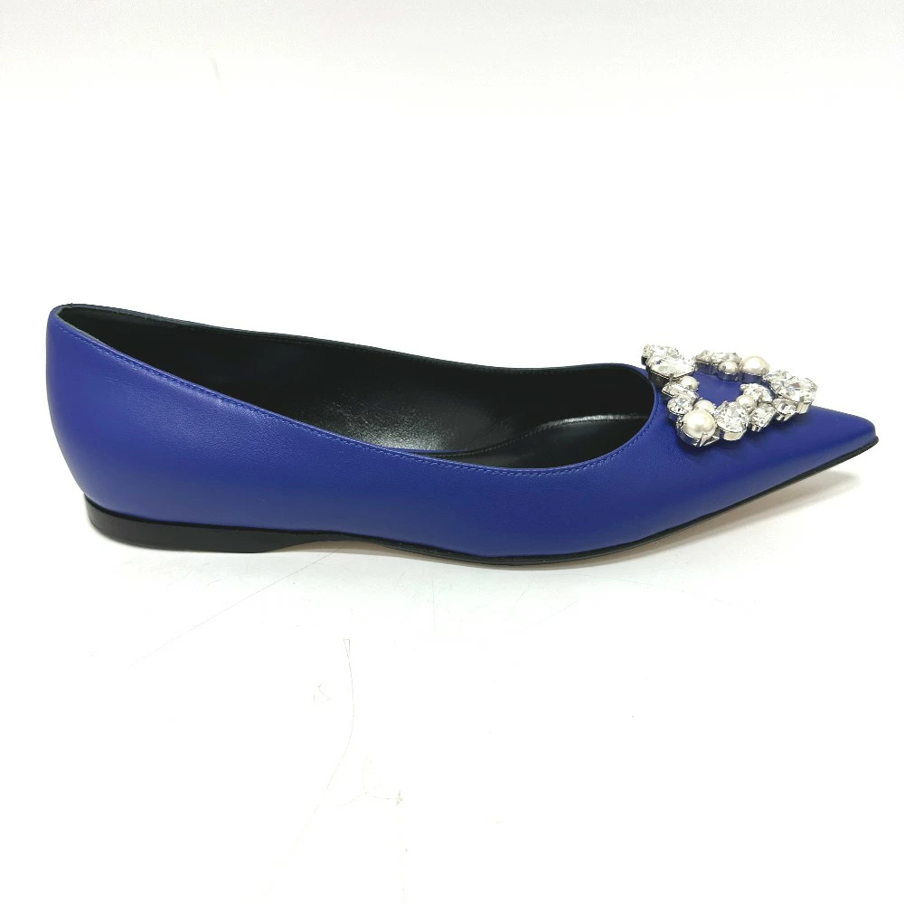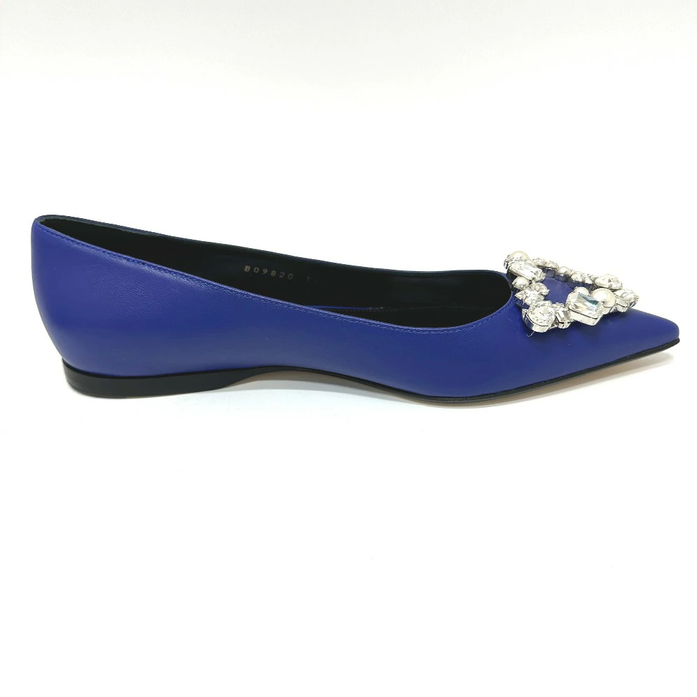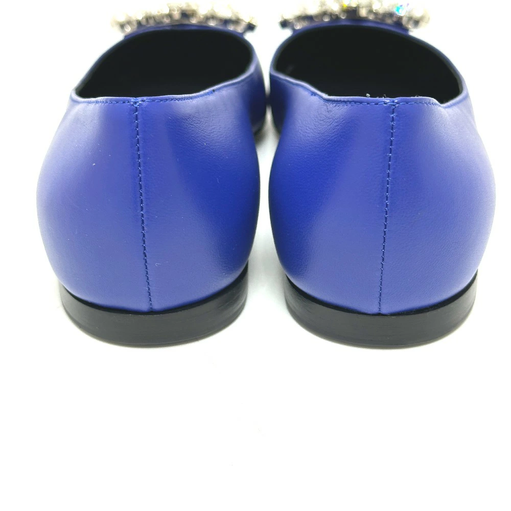 Sergio Rossi B09820-MNAN07 Triangle Jeweled Ballet Flats, Leather, Women's, Blue, Unused, Pre-owned