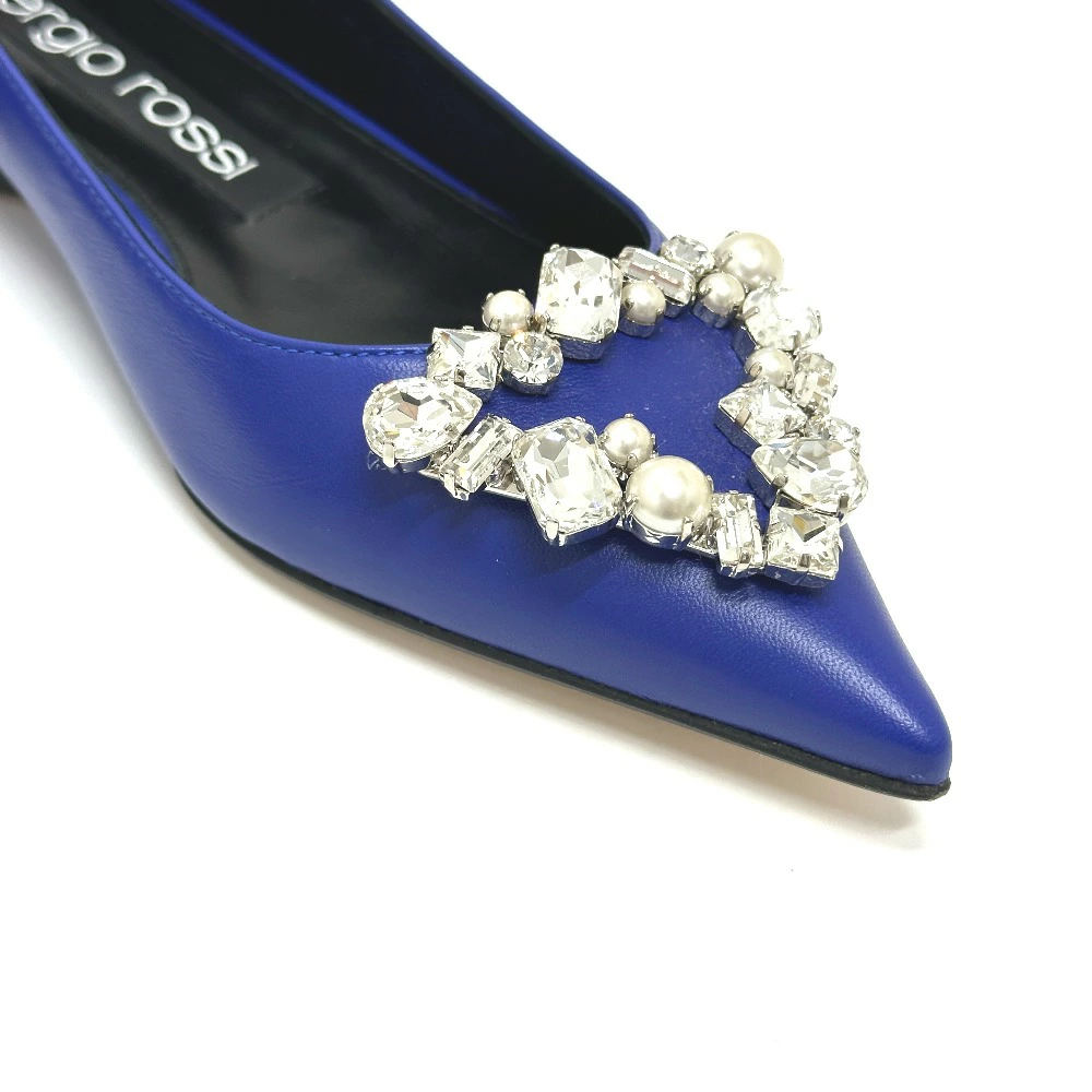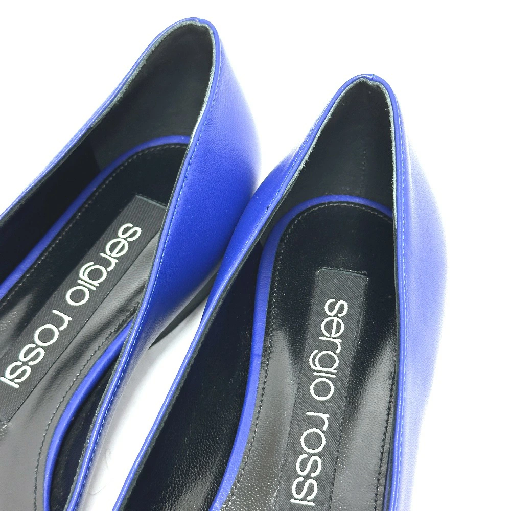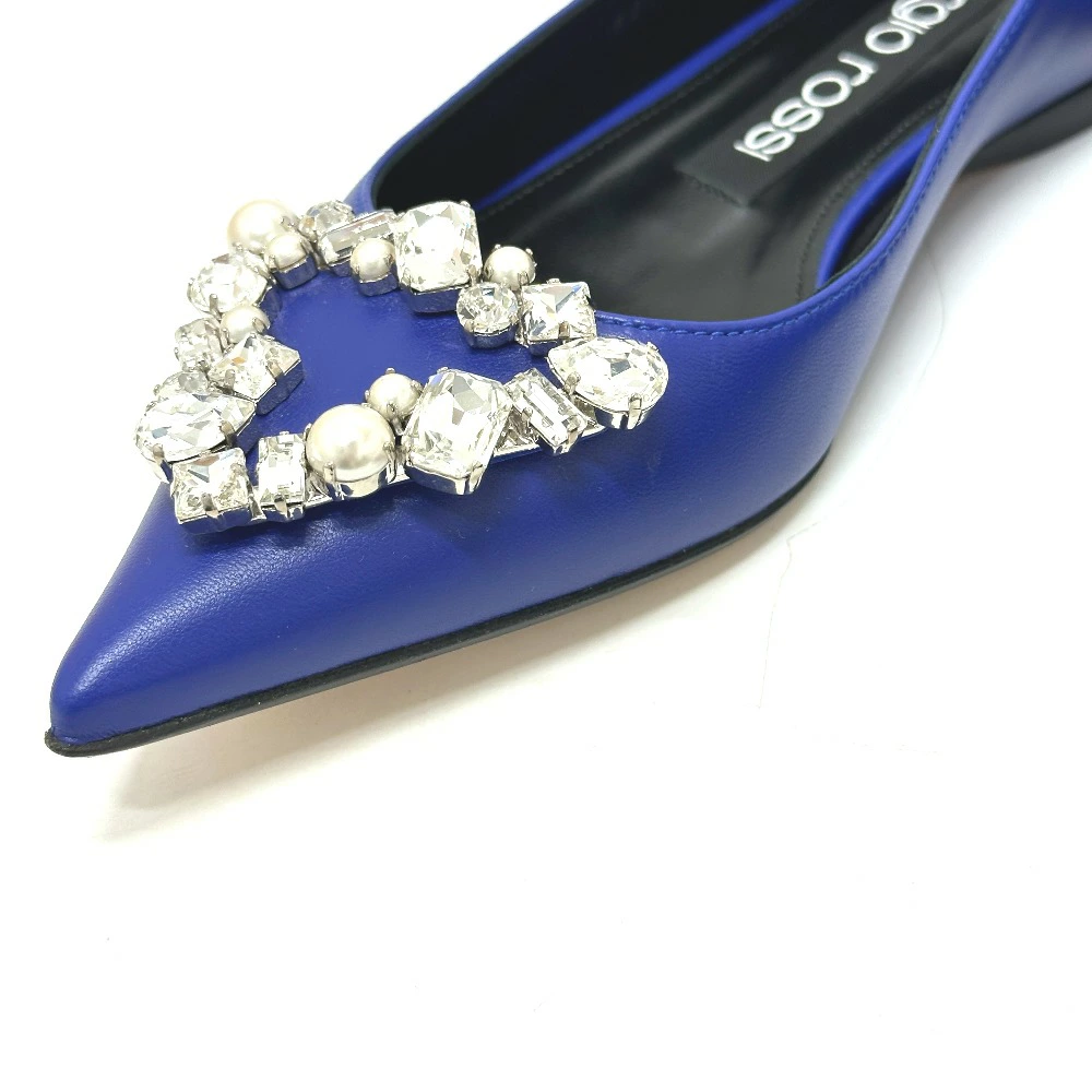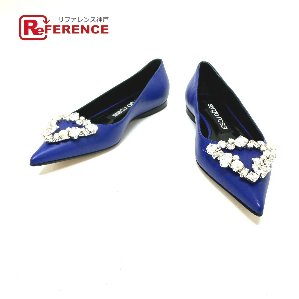 Sergio Rossi B09820-MNAN07 Triangle Jeweled Ballet Flats, Leather, Women's, Blue, Unused, Pre-owned