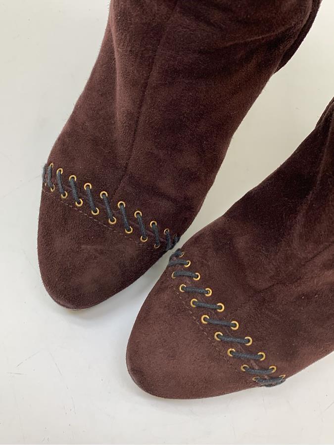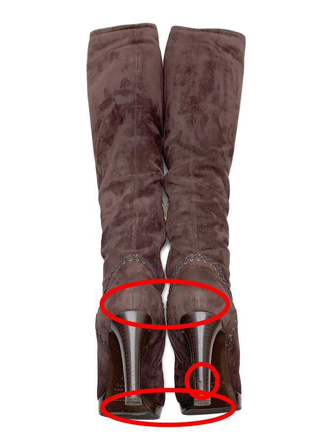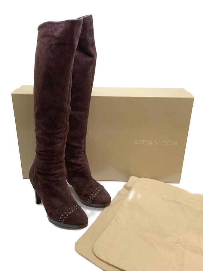 【管理番号】0340792h0224429【ブランド・アイテム】SergioRossi シューズ【性別タイプ】レディース【表記サイズ】36その他【実寸サイズ】高さ:約52.5cmヒール:約8.5cmワイズ:約7.4cm履き口周り:約35.5cm【カラー】ブラウン【素材】画像参照【状態の詳細】USED品のため、ある程度の使用感やダメージが見受けられるお品物となります。【汚れ・シミ】アウトソールに着用による色付きがございます。【傷・ツレ】表側のつま先付近やかかと付近、側面などに擦れがございます。表側のヒール下部付近に擦れ傷がございます。トップリフトにすり減りがございます。【毛玉・毛羽立ち】表側の所々に擦れによると思われる若干の毛羽立ちがございます。【使用感】あり【こんな方におススメ】少しぐらいのシミやダメージが目についても気にならない方にオススメ【付属品】保存袋・箱(取り外し可)※箱や袋をお付けしていますが商品保護のためですので、箱や袋の若干のダメージなどはご容赦ください。【備考】