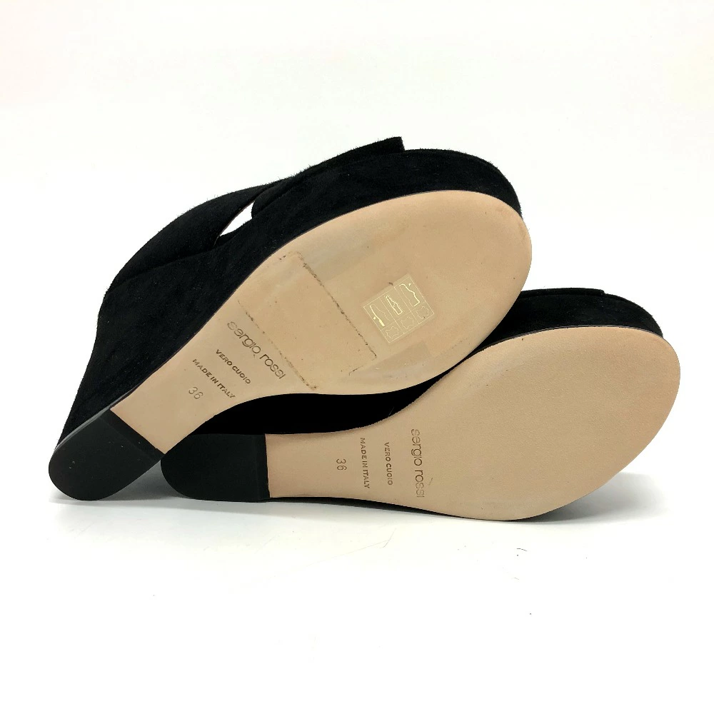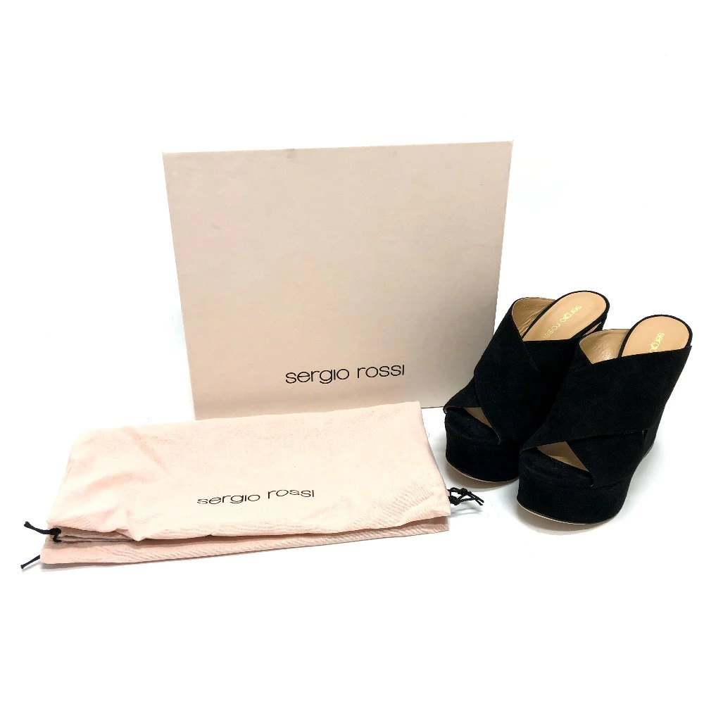 Sergio Rossi open-toe sandals in suede, black, unused, pre-owned, for women.