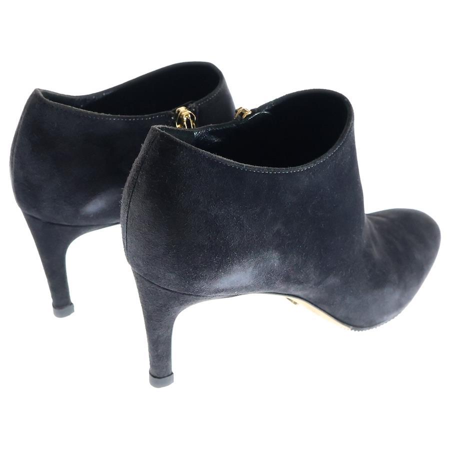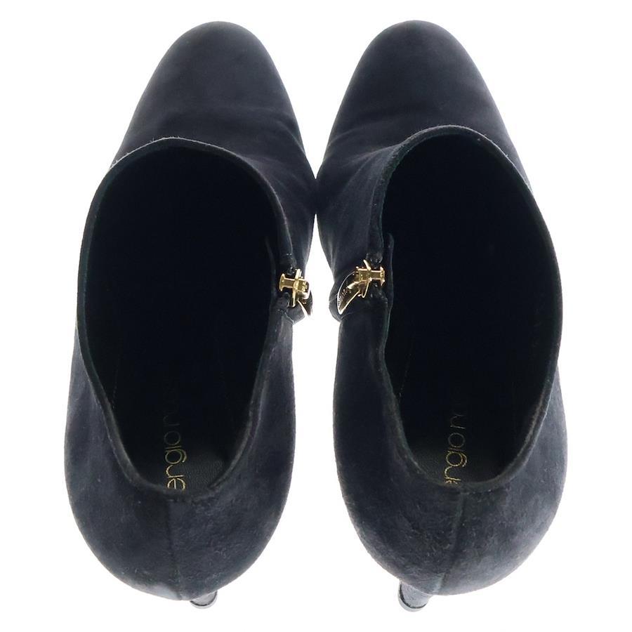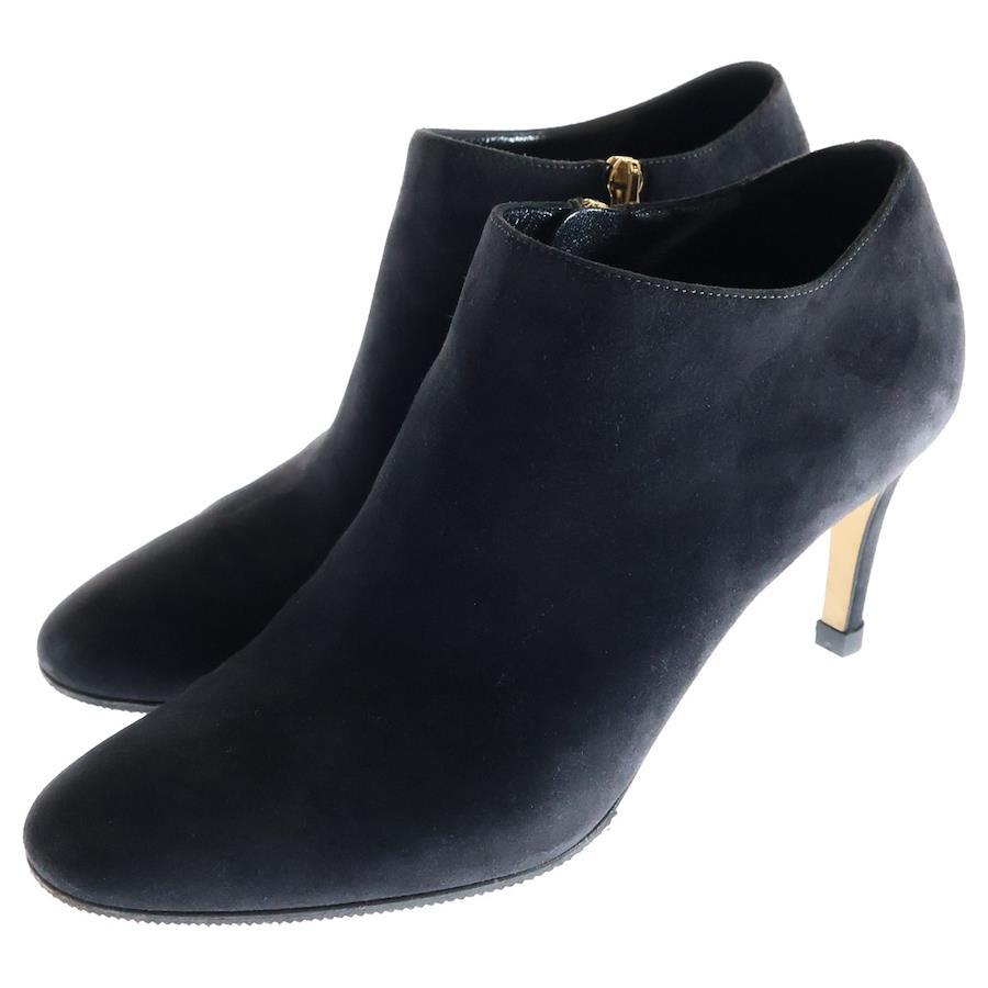 [モデル]スウェードレザー サイドジップ ヒール ショートブーツ シューズ グレー レディース