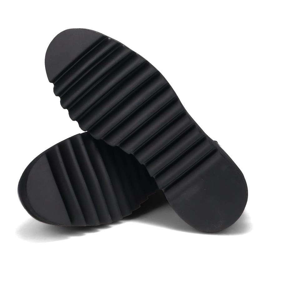 | 武骨なデザインにシャークソールをつけたブーツ 【素材】 アッパーはワイルドな印象のシボ革または秋冬の季節感を感じられるスエードの2パターンをご用意。 ※本革を使用している為、多少のムラや小傷などがございます。 【デザイン】 ワークブーツのデザインをもとにリップソール(シャークソール)をつけたカジュアルブーツ。 武骨なアッパーにボリューム感のあるソールを合わせ都会感のあるようなオシャレ靴として履けるよう、デザインを落とし込みました。 EVA素材のソールは軽量で、見た目よりも軽い履き心地。 また、サイドジッパーで靴の脱ぎ履きがしやすくなっています。 【サイズ】 ※普段通常の革靴で25.5cm、スニーカーで26.5-27cmを着用するスタッフで<41/25.5cm>でややゆとりがありましした。 ※サイズ感は、個人差がございますのであくまで参考程度にお考えください。 ■ブランド...whoop'-de-doo' costume no age ■カラー...BLACK,BLACK SUEDE,CAMEL SUEDE ■アッパー素材....牛革 ■底材.....EVA ■丈......約13cm ■ヒール...約3.2cm ■重さ(片足)...約461g ■中国製 *上記は全て25.5cmで計測した数値です。 *多少の誤差が生じる場合がございますので予めご了承下さい。 whoop de doo co.,ltd whoop'-de-doo' フープディドゥ |