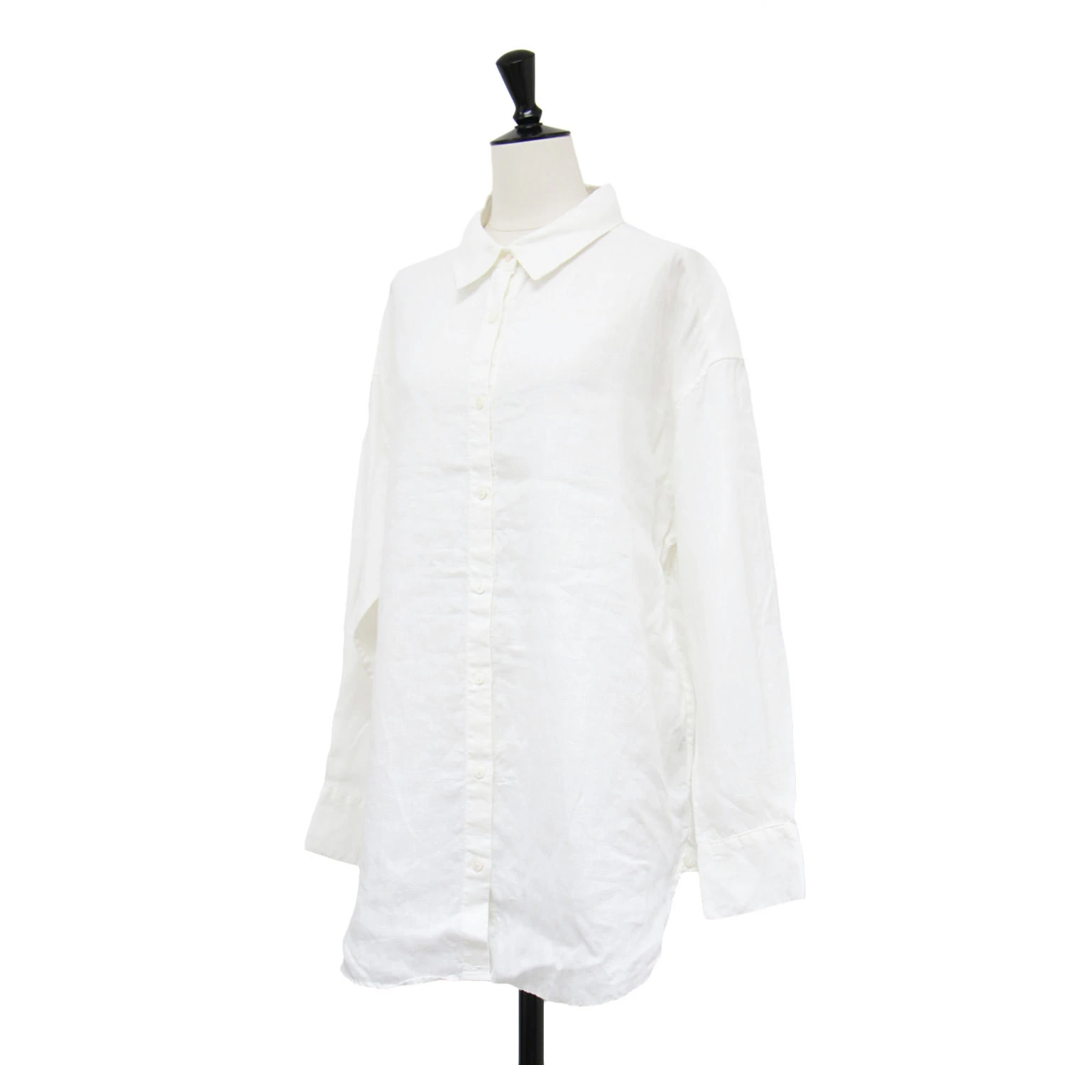 SHENERY Shirt, White, Size: Free | Spring/Summer 2021 2-Way Linen Cache-Coeur Overshirt/Blouse | Long Sleeves, Drop Shoulder | Women's Top | Pre-owned | K4614