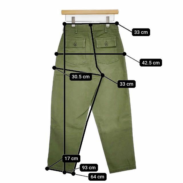 | 実寸サイズ | 総丈:約93cm ウエスト:約33cm 股上:約33cm 股下:約64cm ヒップ:約42.5cm ワタリ幅:約30.5cm 裾幅:約17cm ※採寸画像がある商品はハンガーに吊るした状態での計測のため、平置きでの採寸とは差が生じる場合がございます。平置きでの実寸サイズをご希望の場合は、ご購入前に必ずご質問ください。 ※記載以外のサイズが合わないことを理由とした返品はできませんので、 記載部分以外で実寸サイズの気になる箇所があれば必ず購入前にご質問ください。 |