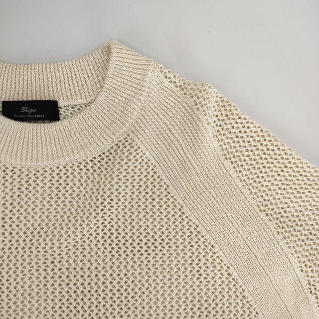 SHIPS primary navy label mesh knit cotton sweater, beige, women's, pre-owned, item number 5-0317M