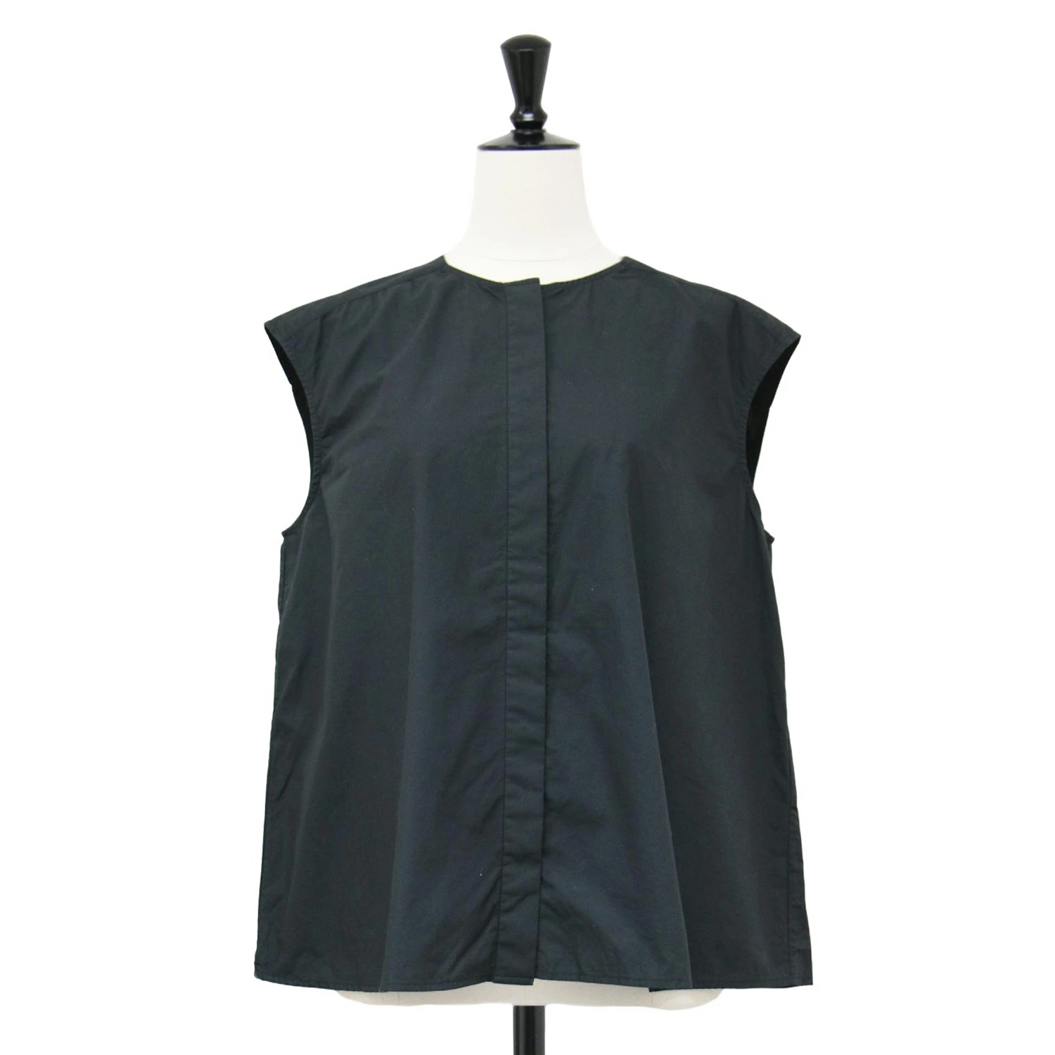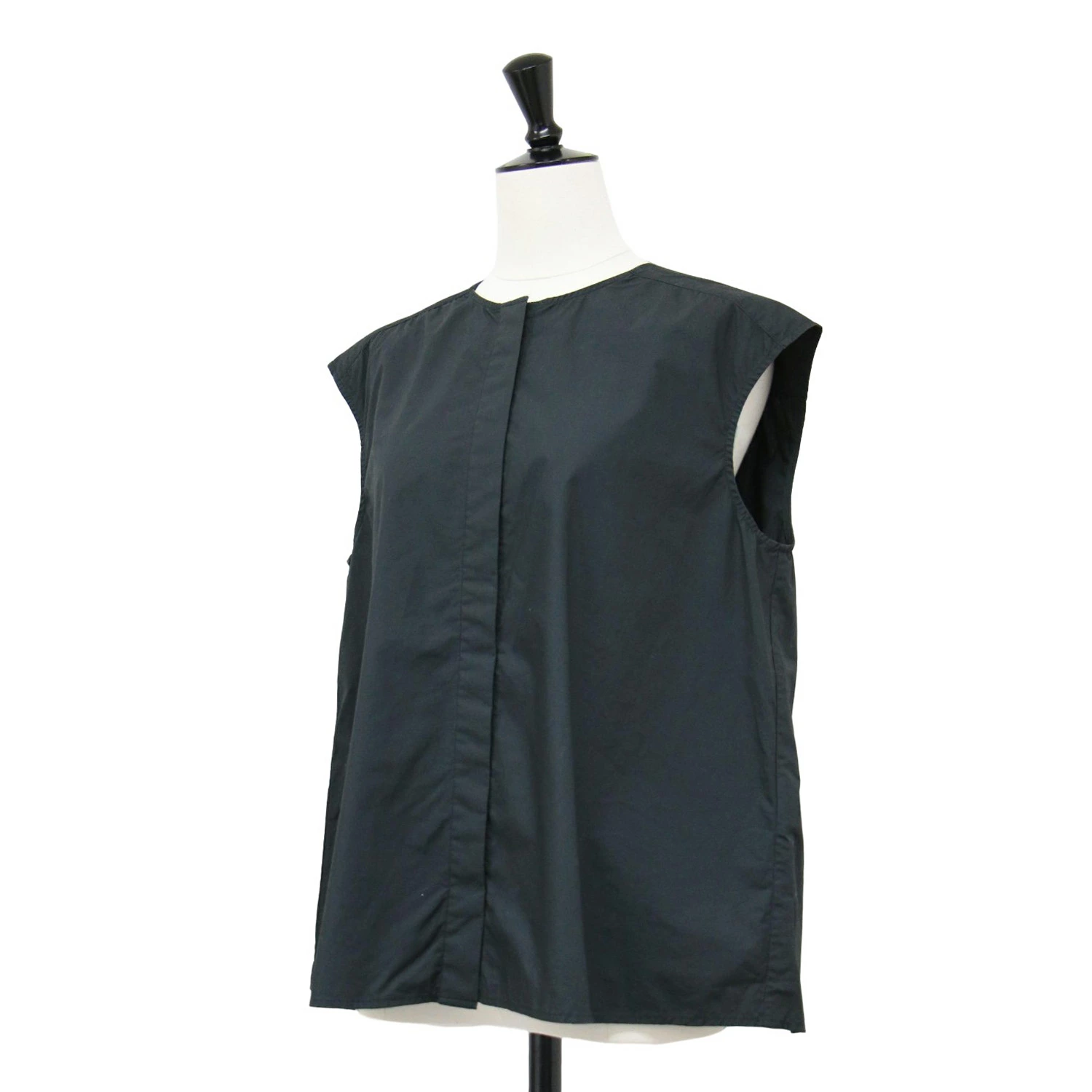 SHIPS Women's Black Blouse, Size: Free, Spring/Summer 2024, Sleeveless Blouse, Collarless Typewriter Cotton, Top, Shirt, Pre-owned, K4617