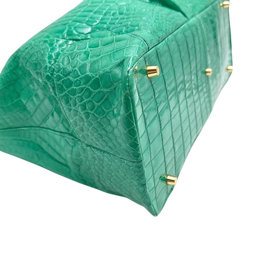 ☆グリーンカラーのクロコのバッグです。内側にはファスナーポケットと携帯ポケットがございます!高級クロコダイル革を使用したハンドバッグで独特な色合い・質感をご堪能頂けるオススメ品です♪