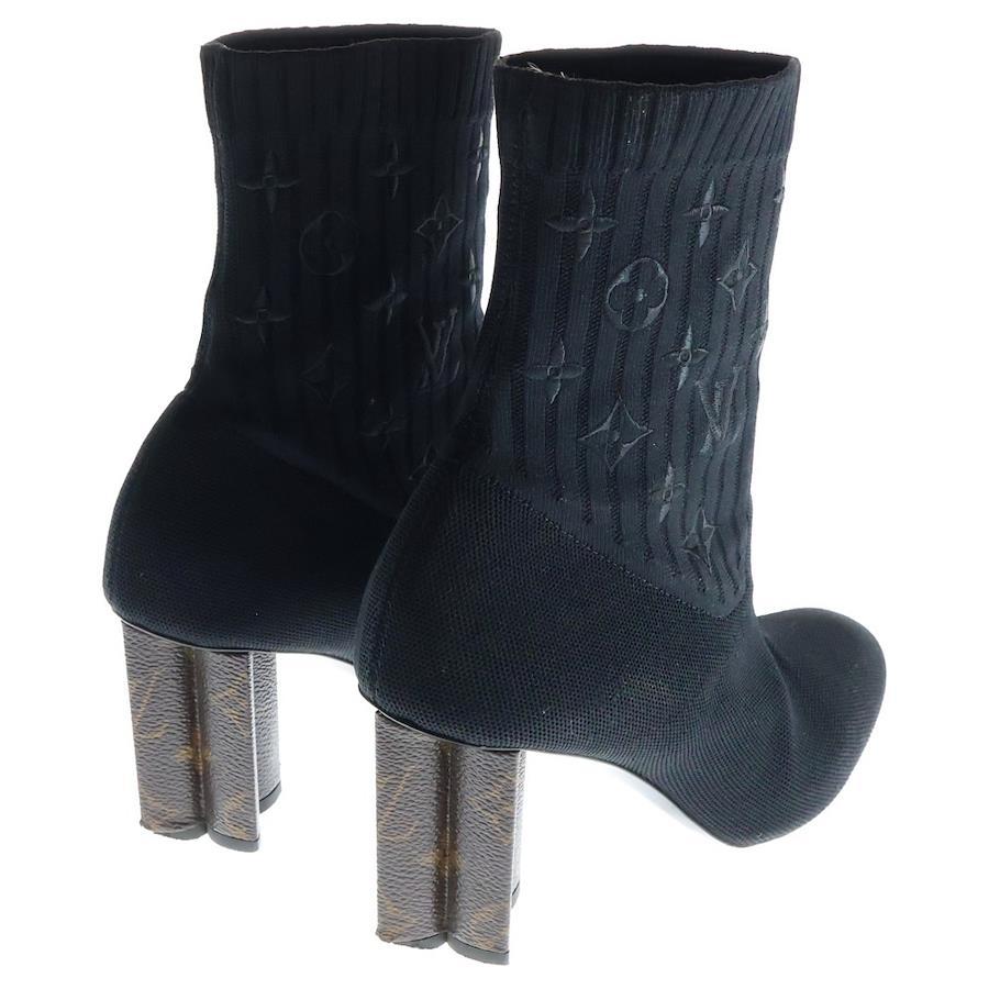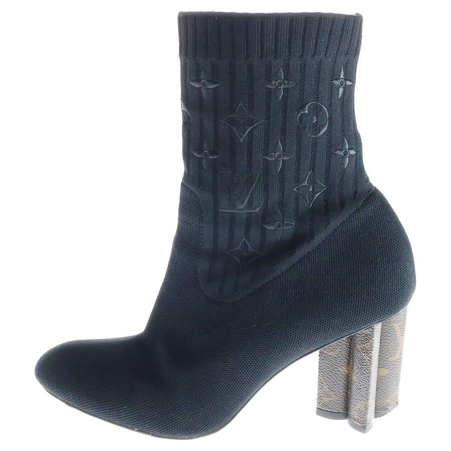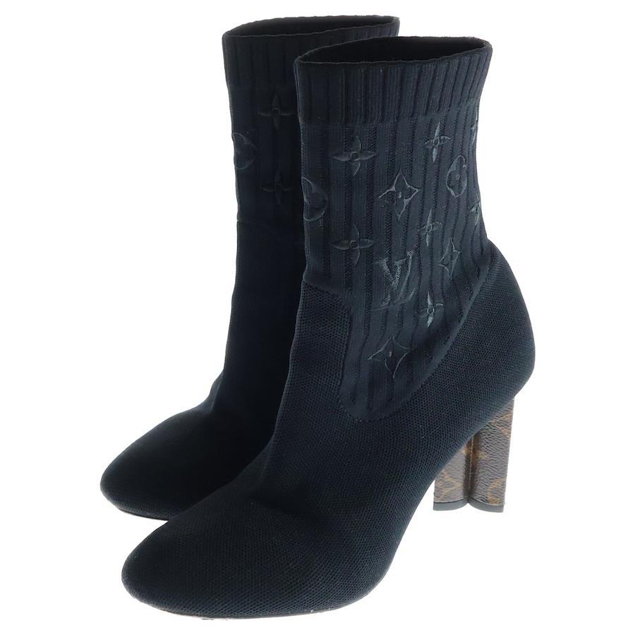 [モデル]シルエットライン モノグラム 刺繍 ヒール アンクル ブーツ シューズ ブラック/ブラウン レディース 1A8555