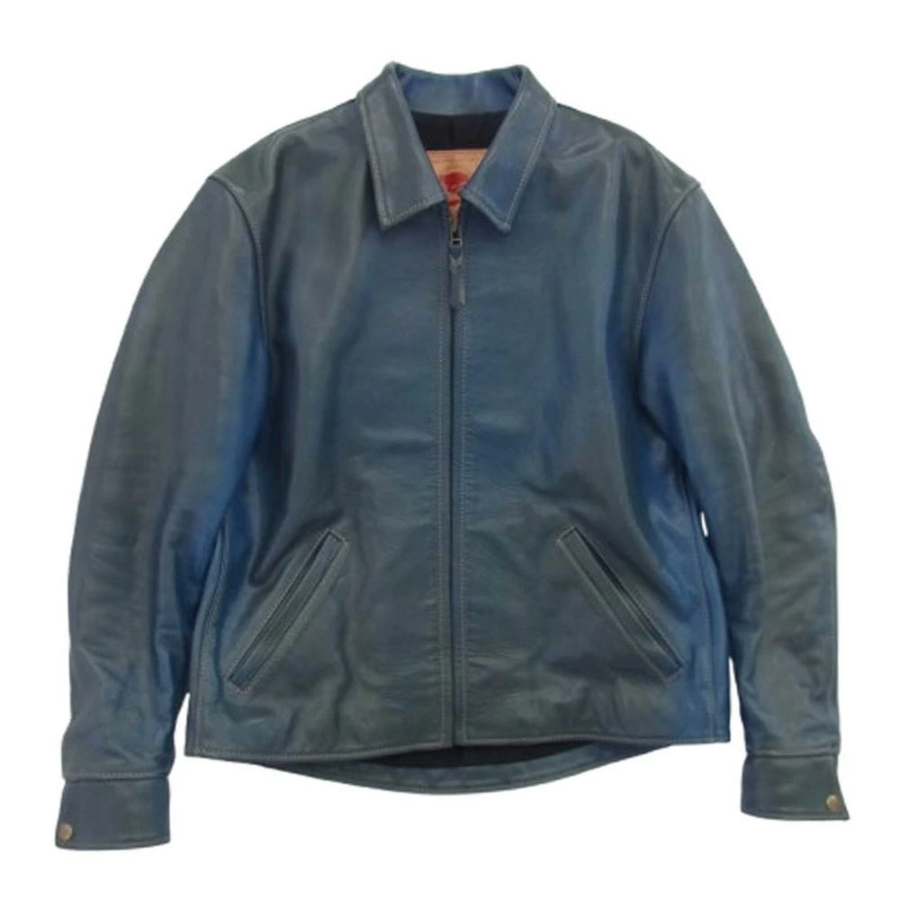 SINGLE COLLAR JACKET JS02 Single Collar Leather Jacket, Blue, Size 42, Men's [Used]