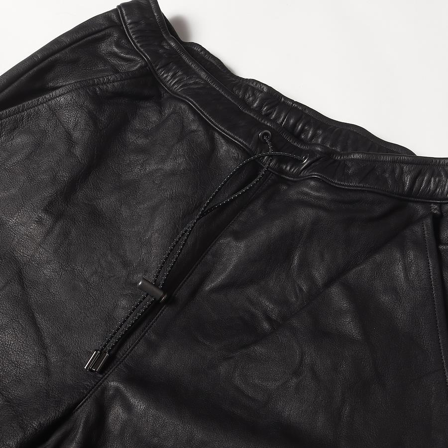 | 商品説明 | カーフレザーを使用し、テーパードシルエットで仕上げたイージーパンツです。裏地はコットン張りとなります。 |