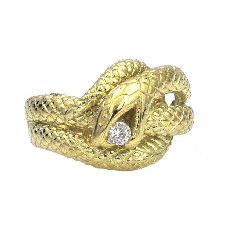 コメント:高級感のある色味のダイヤモンドを加えた蛇モチーフのリング。上品ながら遊び心のあるデザインで、オシャレなファッションのアクセントになるお品物です。