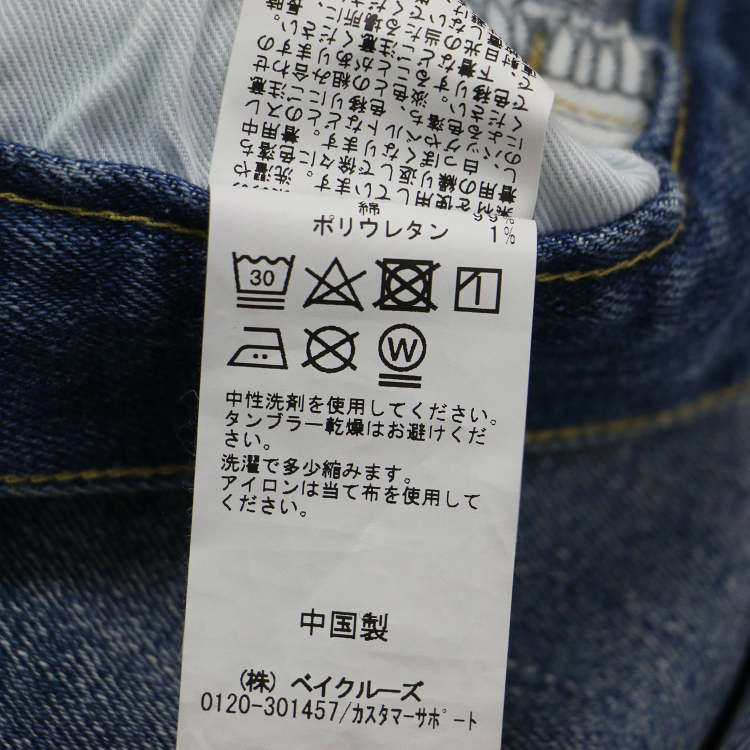 | サイズ | 38(M)ウエスト約74cm(平置き)×股上約30cm×股下約73cm×ワタリ幅約32cm(もも幅)×裾幅約26.5cm |