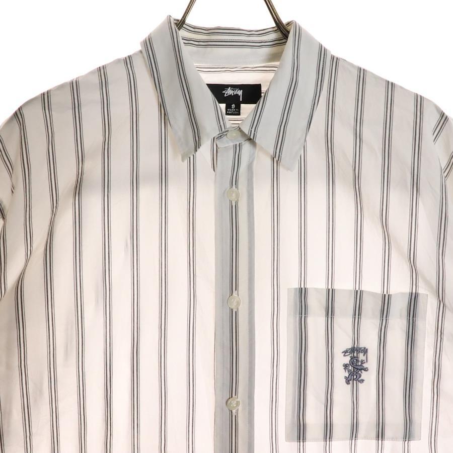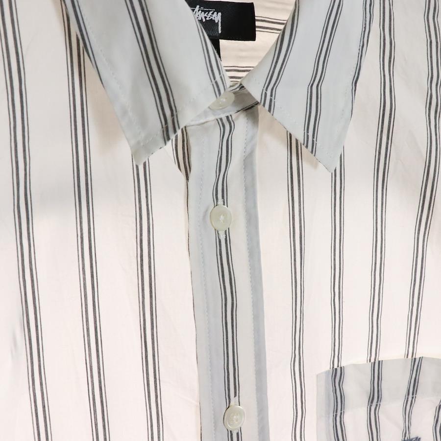 ■商品情報[商品番号]2125I150007[ブランド]STUSSY(ステューシー)[モデル]24SS BOXY SS SHIRT STRIPE ストライプ柄 半袖シャツ ホワイト 1110290[サイズ]平置き採寸 着丈:76センチ 身幅:58.4センチ 肩幅:50.3センチ 袖丈:26センチ表記サイズ:S■状態・コンディション[状態ランク]ランク B使用感有り首元部分に若干の黄ばみ有り