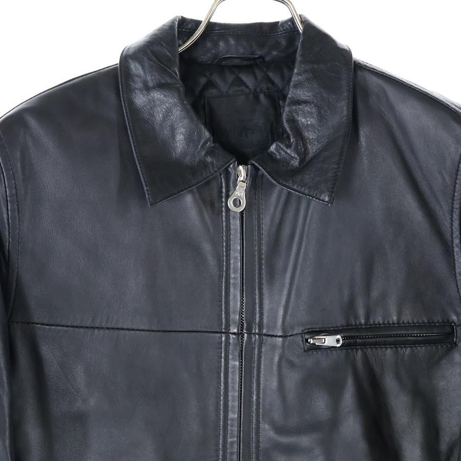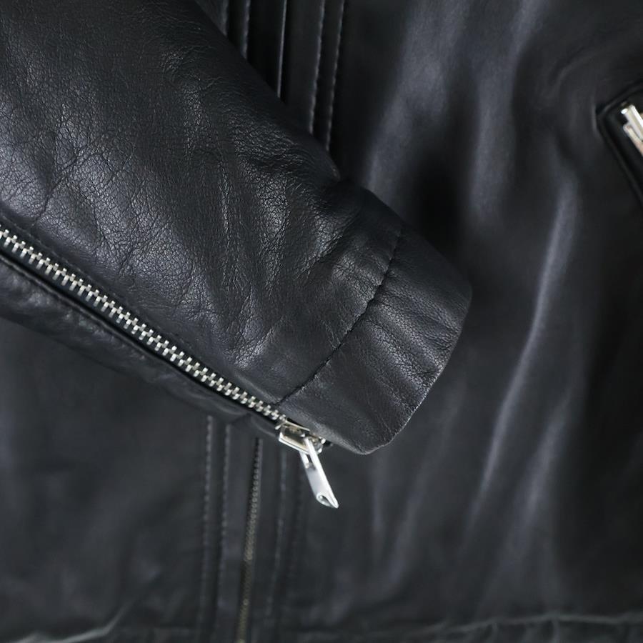 [モデル]ラムレザー ジップアップ シングルライダースジャケット ブラック