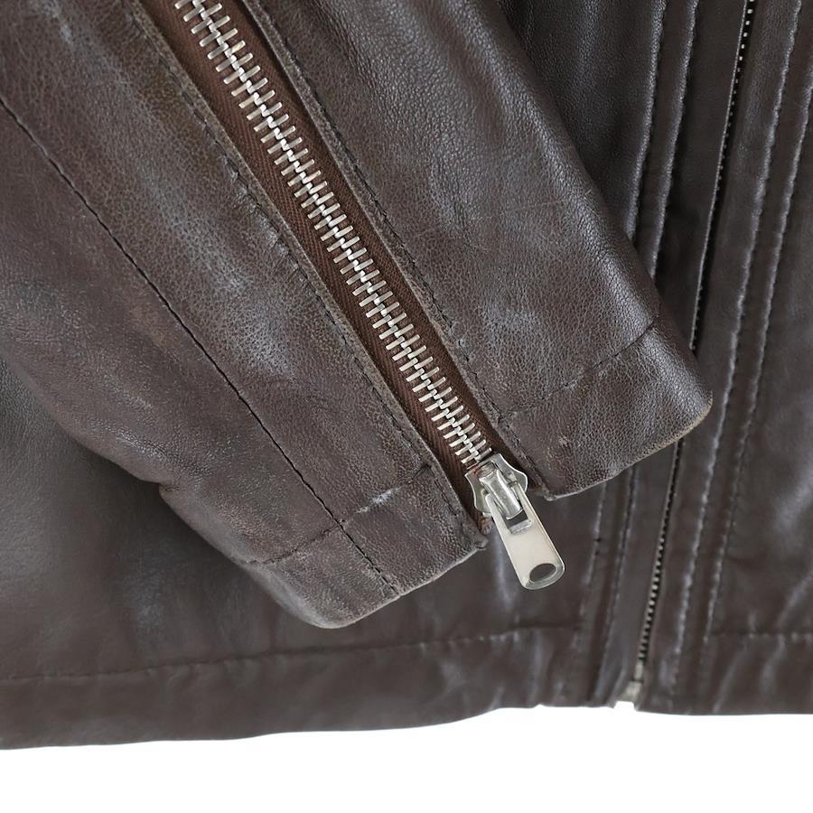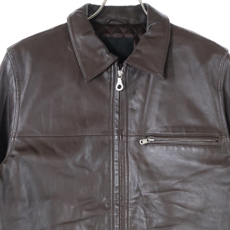 [モデル]ラムレザー ジップアップ シングルライダースジャケット ブラウン