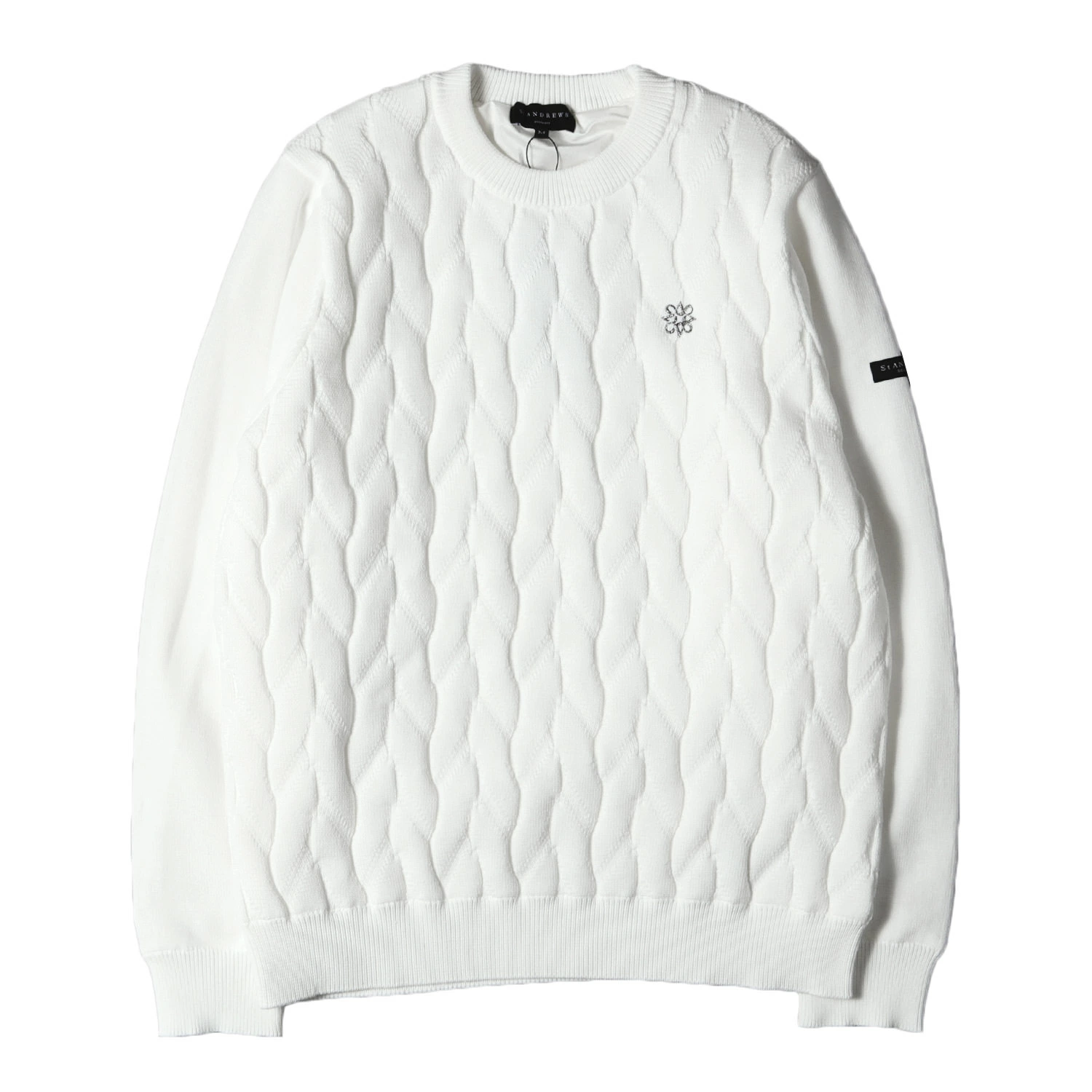 st ANDREWS Men's Sweater, Size M, 2022 Autumn/Winter Collection, One-Point Icon Embroidery Polyester Knit (042-2270151), White, Tops, K4614