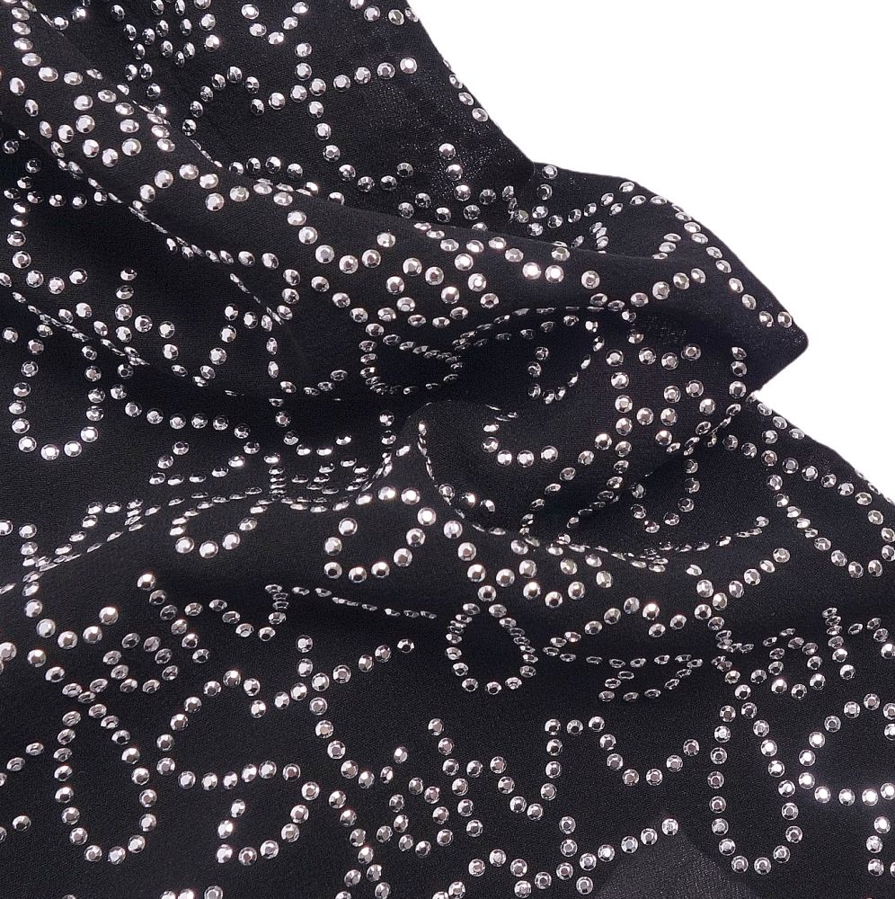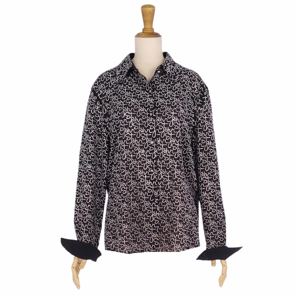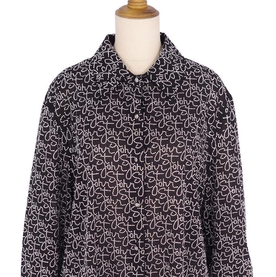St. John ST JOHN Shirt Blouse Long Sleeve Rhinestone Silk Top Women's Size 8 (M) Black/Silver [Used]