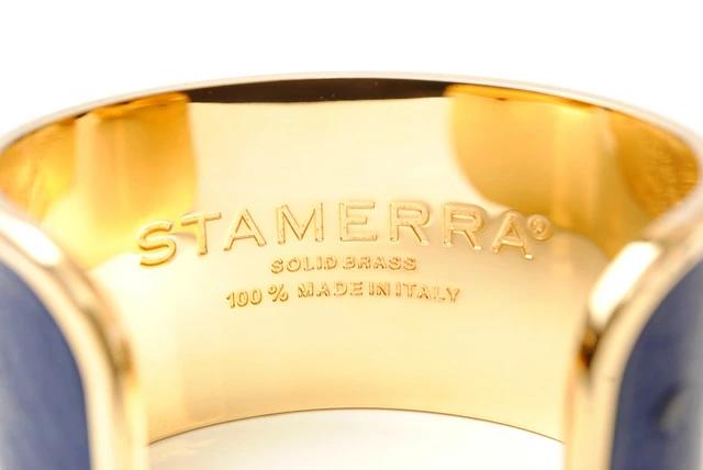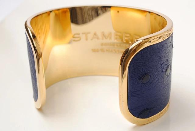 スタメーラより、人気の高級レザーを使用したバングルです。イタリア製の爬虫類レザーを合金に巻いたオシャレなデザインです。合金ですので曲げ次第で男女問わず、お使いいただけます。1995年イタリアで創立し、100%イタリアで製造されています。自社工場の熟練した職人が最新の技術と設備を駆使し、斬新さを追求した製品です。世界のトップブランドに供給をし好評を得ています。
