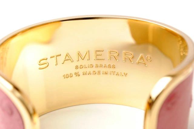 スタメーラより、人気の高級レザーを使用したバングルです。イタリア製の爬虫類レザーを合金に巻いたオシャレなデザインです。合金ですので曲げ次第で男女問わず、お使いいただけます。1995年イタリアで創立し、100%イタリアで製造されています。自社工場の熟練した職人が最新の技術と設備を駆使し、斬新さを追求した製品です。世界のトップブランドに供給をし好評を得ています。