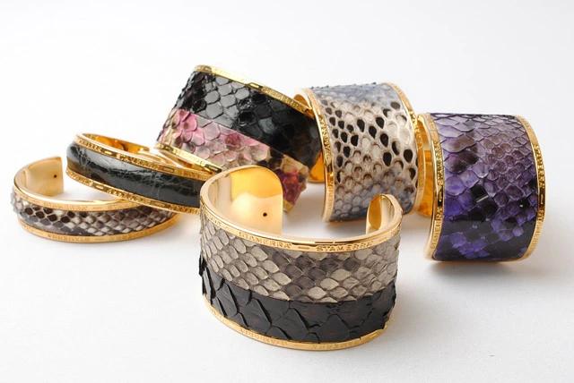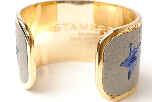 スタメーラより、人気の高級レザーを使用したバングルです。イタリア製の爬虫類レザーを合金に巻いたオシャレなデザインです。合金ですので曲げ次第で男女問わず、お使いいただけます。1995年イタリアで創立し、100%イタリアで製造されています。自社工場の熟練した職人が最新の技術と設備を駆使し、斬新さを追求した製品です。世界のトップブランドに供給をし好評を得ています。
