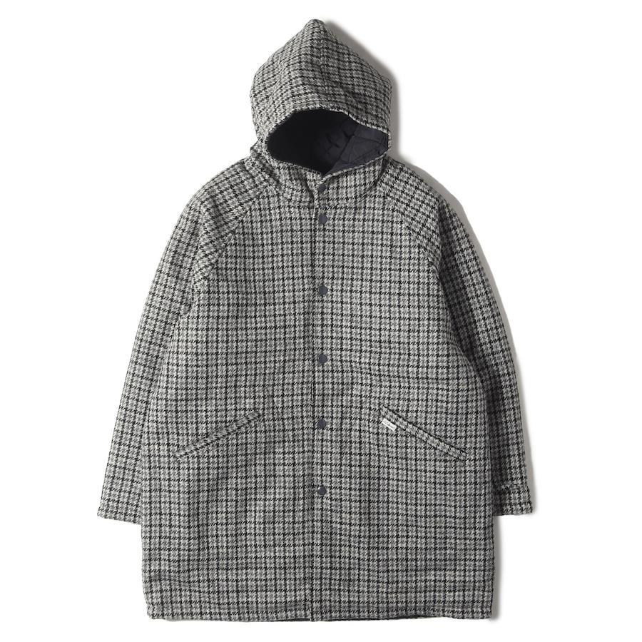 | 商品説明 | ・HARRIS TWEED社製のハウンドトゥース柄ウール生地×ポリエステルキルト生地 ・リバーシブル仕様 ・フロントスナップボタン使用 ・フーデッドデザイン |