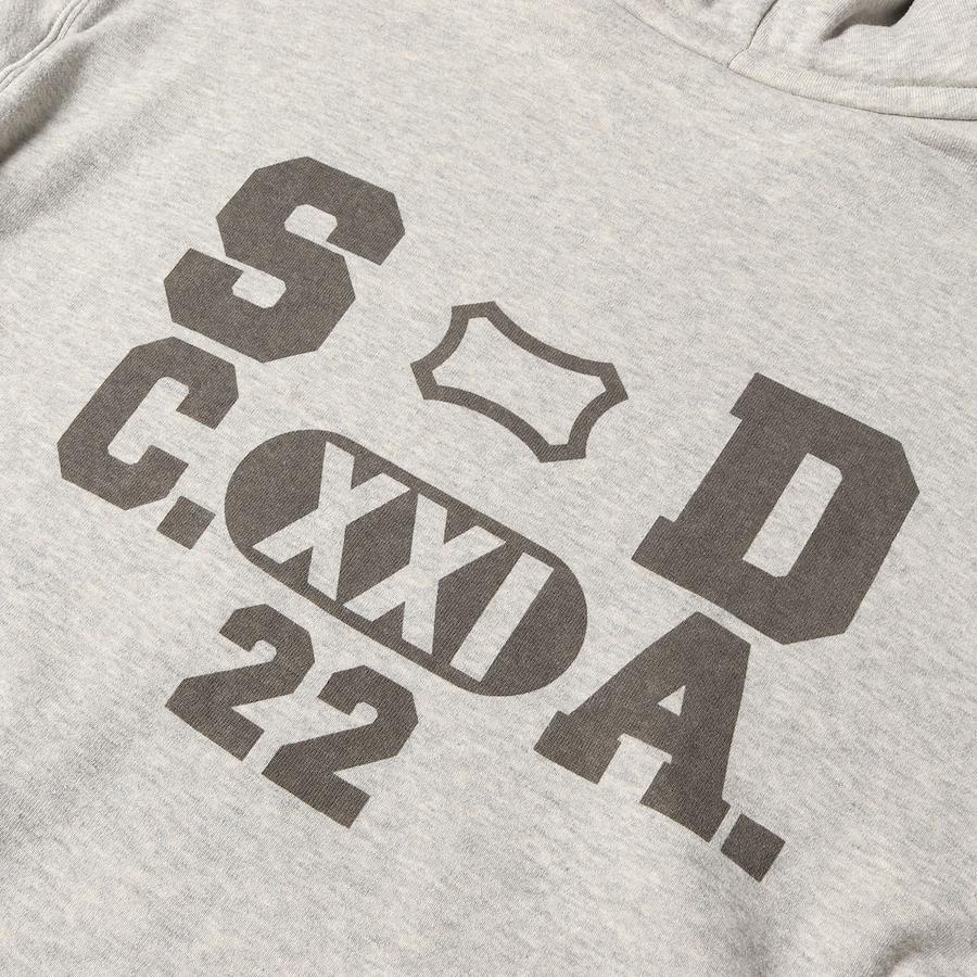 | 商品説明 | 吊り編み機を使用した超肉厚のダブルフェイス仕様の二重スウェット生地を使用し、40年代から50年代の後付けフードデザインがあしらわれ、バックにはブランドロゴプリントが配され、前Vガゼットディテールで仕上げられた"SD Logo After Hood Sweat"です。 |